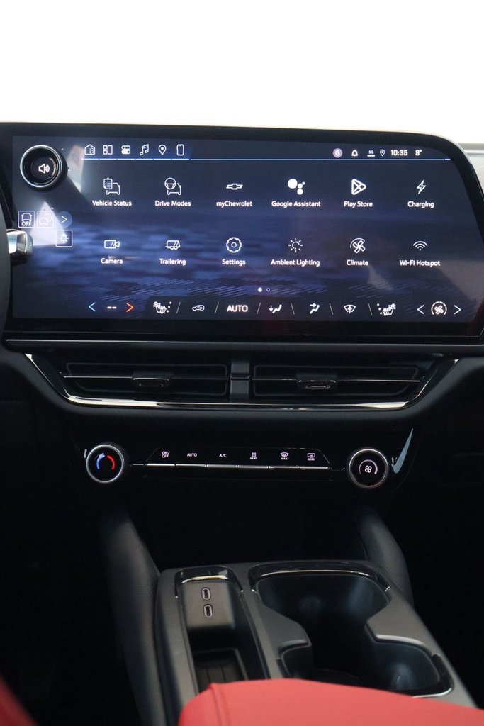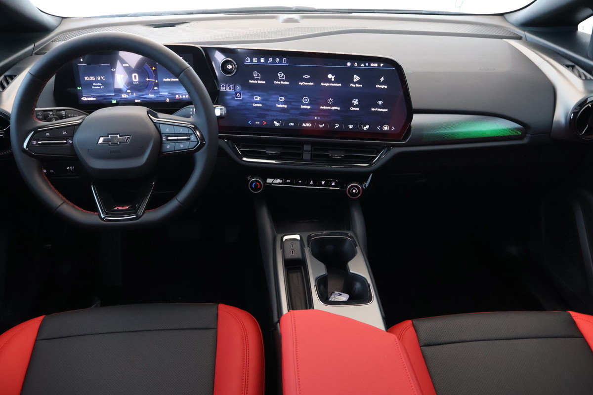Rétroviseurs extérieurs chauffants à réglage électrique repliable à la main,Aide au maintien de la voie avec avertisseur de sortie amélioré,Système de navigation grace à la compatibilité avec Google intégré (certains plans de service sont requis des modalités et des restrictions s'appliquent),Hayon mains libres programmable à commande électrique AutoSense,Alerte de prévention de collision,Système sonore à écran ACL couleur évolué de 17 7 po en diagonale avec compatibilité avec Google intégrée (Plan de services sélectionné requis des modalités et des restrictions s'appliquent) y compris la navigation les applications connectées les profils personnalisés pour les paramètres de chaque conducteur et la reconnaissance vocale naturelle,Sac gonflable capteur de présence côté passager dispositif de sécurité gonflable avec témoin de capteur capteur de présence de passager ou d’enfant à l’avant,Témoin de capteur de distance avec le véhicule devant,Sacs gonflables frontaux pour les genoux et latéraux montés dans les sièges du conducteur et du passager avant et rideaux gonflables montés au pavillon pour les passagers des places d'extrémité. qui comprend le capteur de présence côté passager avant,Démarreur à distance application pour téléphones intelligents,Compatible avec le point d'accès sans fil 5G,Régulateur de vitesse adaptatif,Volant chauffant automatique,Réglage des sièges électrique en 8 sens côté conducteur,Recharge sans fil portable,Système antivol entrée par effraction,Sièges coussins et dossiers chauffants côtés conducteur et passager avant,Phares IntelliBeam à phares de route automatiques,Siège soutien lombaire à réglage électrique côté conducteur,Climatiseur commande automatique de la température monozone,Colonne de direction inclinable et télescopique,Glaces intimité,Phares à DEL avec phares de jour à DEL,Glaces arrière teinte foncée,Prises de courant (2) de 12 V panneau inférieur du tableau de bord et espace utilitaire auxiliaire,Ceinture de sécurité capteur de présence du passager avant,Véhicule à zéro émission (VZE),Groupe sécurité active 2,Freinage automatique en marche arrière,Système de verrouillage télédéverrouillage longue portée,Préparation pour enrouleur de dispositif de retenue verrouillage automatique,Levier électronique de précision,Fonction ado une fonctionnalité configurable qui vous permet de personnaliser certains paramètres du véhicule associés à un porte-clés pour encourager des habitudes de conduite sécuritaire. Elle peut limiter certaines caractéristiques livrables du véhicule et empéche la désactivation de certains systèmes de sécurité. Elle comprend la fonction boucler pour rouler qui empéche le conducteur de quitter la position de stationnement pendant 20 secondes maximum si la ceinture de sécurité du conducteur n'est pas bouclée. Un rapport de bord vous renseigne sur les habitudes de conduite et vous aide à continuer à encadrer votre nouveau conducteur,Guidage de l'attelage,Infodivertissement haut,Ports USB 2 de type C situés à l'arrière de la console centrale de recharge seulement,Préparation pour remorquage câblage (ne comprend pas le récepteur d'attelage),Recharge c.a. capacité de 11 5 kW,Carénages de rétroviseurs peint,Essuie-glaces intermittent à l'avant,Brancards de toit noir,Éclairage intérieur ambiant multicolore,Unité d'entraînement électrique principal 1 moteur inverseur intégré système de stationnement aimants 76F,Freinage de détection des piétons et des cyclistes à l'avant,Batterie système de propulsion Ultium,Crochet de sauvetage avant,Témoin d'avertissement de ceinture de sécurité arrière,OnStar One standard (OnStar One Business standard pour parc),Aide à la sécurité Chevrolet,Tapis protecteurs avant garnis de moquette,Caractéristique du système sonore sonorisation à 6 haut-parleurs,Tapis protecteurs arrière garni de moquette,Accoudoir arrière central à l'arrière avec porte-gobelets,Groupe préparation pour de plaque d’immatriculation avant (Compris avec les commandes destinées aux États qui exigent une plaque d'immatriculation avant),Poignées de portes de la couleur de la carrosserie,Alerte de prévention de collision de pare-brise réfléchissante à DEL,Freinage d'urgence automatique amélioré,Pare-soleil côtés conducteur et passager avant coulissant miroir de courtoisie couverts,Alerte de cycliste sur le côté,Suspension tenue de route et maniabilité,Roues de 21 po (53 3 cm) en aluminium peint en noir,Centralisateur informatique de bord écran de 11 po en diagonale,Feux arrière à DEL,Pneus 275/40R21 toutes saisons à flanc noir auto-obturants,Glaces à commande électrique avec montée rapide côté conducteur et descente rapide de toutes les glaces,Écran capteur de présence automatique du passager avant,Freinage d'urgence automatique dans les intersections,Klaxon double tonalité,Phares barre lumineuse centrale,Réglage des sièges manuel en 6 sens du siège du passager avant,Roue de secours aucun,Compatible avec les services automobiles Google,Volant gainé à jante inférieure tronquée,Tendeur de ceinture de sécurité arrière,Boîte à gants,Direction assistée avec surveillance des angles morts,Rappel de vérification des sièges arrière,Vision périphérique haute définition,Reconnaissance des panneaux de circulation amélioré indicateur de capteur,SiriusXM avec plateforme 360L Abonnement d'essai,Glaces latérales avant en verre trempé à vitrage solaire,Console au plancher avec accoudoir,Serrures de porte de sécurité à l'épreuve des enfants aux portes arrière,Batterie 12 V/60 AH 680 ENCCA,Crochet de sauvetage arrière,Freins disque de 17 po avant et arrière à étrier coulissant avec disques DURALIFE avec capacité de récupération. Freins à disque antiblocage aux 4 roues,Ports USB 2 ports de recharge/données de type C situés sur la console au planche