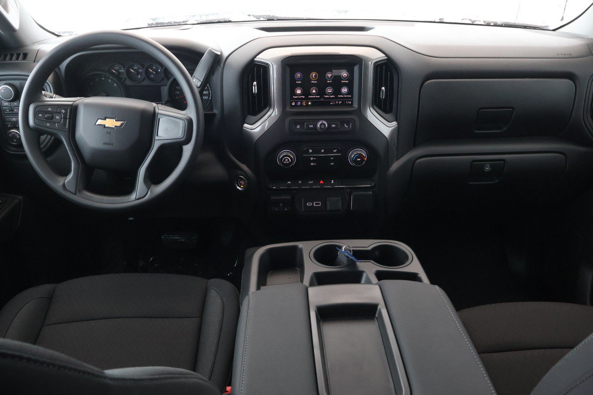 Rétroviseurs extérieurs chauffants à réglage électrique,StabiliTrak système de contrôle de la stabilité avec antiroulis proactif et traction asservie avec contrôle électronique anti-louvoiement de remorque et aide au démarrage en pente,Serrures de porte à commande électrique,Sacs gonflables sacs gonflables frontaux à déploiement adapté pour le conducteur et le passager de la place d'extrémité avant sacs gonflables latéraux montés dans les sièges du conducteur et du passager de la place d'extrémité avant et rideaux gonflables latéraux pour les passagers des places d'extrémité avant et arrière; comprend le capteur de présence du passager pour le sac gonflable frontal de la place d'extrémité avant,Projection par téléphone sans fil pour CarPlay d'Apple et Android Auto,Système sonore système d'infodivertissement 3 de Chevrolet écran couleur tactile HD de 7 po en diagonale AM/FM stéréo lecture audio en continu Bluetooth pour 2 appareils actifs commande vocale du téléphone compatibilité avec Apple CarPlay sans fil et Android Auto sans fil,Fonction arrêt et démarrage automatiques,Système de surveillance de la pression des pneus auto-apprentissage comprend alerte de gonflage des pneus (ne s’applique pas au pneu de secours),Climatiseur manuelle monozone,Démarrage à bouton-poussoir,Éclairage espace utilitaire monté dans la cabine et intégré avec le feu de freinage central surélevé arrière avec interrupteur dans le bloc de commandes sur le côté gauche du volant (à incandescence sur les modèles à cabine classique à DEL sur les modèles à cabine multiplace et à cabine double),Prise de courant auxiliaire avant 12 volts,Boussole situé dans le groupe d'instruments,Poignées de maintien montés sur les montants avant pour le conducteur et le passager montés sur les montants arrière,Hayon et cache de protection de longeron de caisse supérieurs,Marchepied pare-chocs arrière,Batterie grande capacité 730 A de démarrage à froid 80 A/h sans entretien avec protection antidécharge et prolongation d’alimentation des accessoires,Groupe suspension de grande capacité,Direction assistée électrique à crémaillère,Roues de 20 po x 9 po (50 8 cm x 22 9 cm) en aluminium peint en argent brillant,Pont arrière rapport de 3 42,Cadre partie avant hydroformée entièrement caissonnée,Volant uréthane,Ports USB 2 ports de recharge/données situés sur le tableau de bord,Témoin d'avertissement de ceinture de sécurité arrière siège arrière,Verrou de porte-pneu verrou de porte à serrure utilisant la même clé que pour l'allumage et les serrures de portes,Durabed caisse de pick-up,Groupe d'instruments six instruments avec indicateur de vitesse indicateur du niveau de carburant indicateurs de température du moteur indicateurs de pression d'huile tachymètre et voltmètre,Caractéristique du système sonore sonorisation à 6 haut-parleurs,Rappel de vérification des sièges arrière,Pneu de secours 255/80R17SL toutes saisons à flanc noir,Ravitaillement sans bouchon,Affichage de la température extérieure dans l'affichage de la radio,Bouches d'aération arrière de chauffage et de climatisation,Fonction ado,Crochets d'arrimage (12) fixe d'une capacité de 226 8 kg (500 lb) par coin,Poignées de portes noir,Système d’échappement sortie simple,Feux arrière avec feux arrière d'arrét et de recul à incandescence,Roue 17 po x 8 po (43 2 cm x 20 3 cm) de secours pleine grandeur en acier,Feux de circulation de jour avec commande automatique de l’éclairage extérieur,Bouclez votre ceinture de sécurité,Freins à disque aux quatre roues avec système antiblocageavec disques DURALIFE,Pneus 275/60R20 toutes saisons à flanc noir,Rétroviseur intérieur à inclinaison manuelle,Phares à halogène réflecteurs avec feux de jour à halogène,Indicateur d'usure des garnitures de frein,Réglage des sièges manuel en 4 sens côté passager,Miroirs Chauffants,Assistance en pente,Anti-dérapage,Portières à verrouillage électrique,Capteurs frontal,Coussins impact latéraux,Coussins conducteur et passager avant,Android Auto,AppleCar Play,Main libre Bluetooth,Bouton arrêt et démarrage,Vérification de pression Pneus,Climatiseur,Commandes montées sur le volant,Prise de courant