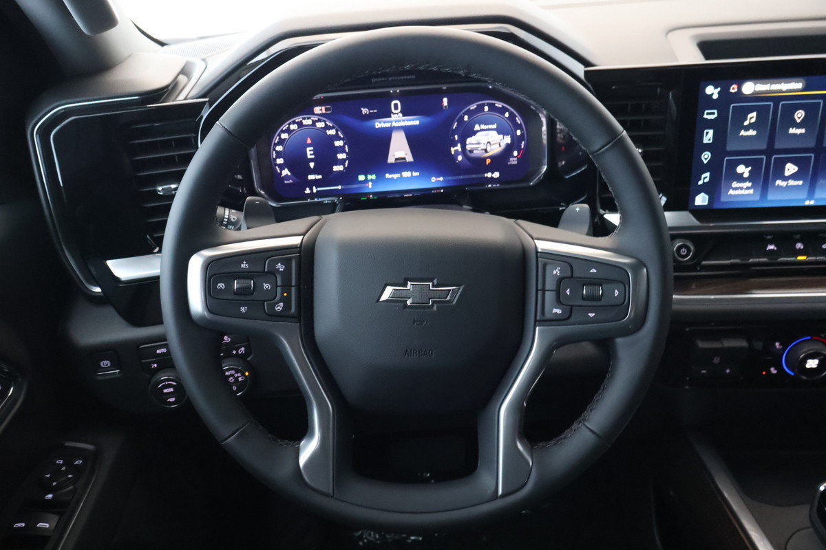 StabiliTrak système de contrôle de la stabilité avec antiroulis proactif et traction asservie avec contrôle électronique anti-louvoiement de remorque et aide au démarrage en pente,Serrures de porte à commande électrique,Système sonore Système d'infodivertissement Chevrolet 3 haut de gamme avec compatibilité avec Google intégrée(certains plans de service requis des modalités et des restrictions s'appliquent) y compris la capacité de navigation écran tactile couleur HD de 13 4 po en diagonale comprend écran multipoint AM/FM stéréo lecture audio en continu Bluetooth pour la musique et la plupart des téléphones; avec CarPlay d'Apple sans fil et Android Auto sans fil pour téléphones compatibles reconnaissance vocale évoluée applications intégrées au véhicule profils personnalisés pour les paramètres de l'infodivertissement et du véhicule,Sacs gonflables sacs gonflables frontaux à déploiement adapté pour le conducteur et le passager de la place d'extrémité avant sacs gonflables latéraux montés dans les sièges du conducteur et du passager de la place d'extrémité avant et rideaux gonflables latéraux pour les passagers des places d'extrémité avant et arrière; comprend le capteur de présence du passager pour le sac gonflable frontal de la place d'extrémité avant,Projection par téléphone sans fil pour CarPlay d'Apple et Android Auto,Fonction arrêt et démarrage automatiques,Démarrage à bouton-poussoir,Système de surveillance de la pression des pneus auto-apprentissage comprend alerte de gonflage des pneus (ne s’applique pas au pneu de secours),Éclairage espace utilitaire monté dans la cabine et intégré avec le feu de freinage central surélevé arrière avec interrupteur dans le bloc de commandes sur le côté gauche du volant (à incandescence sur les modèles à cabine classique à DEL sur les modèles à cabine multiplace et à cabine double),Phares à DEL réflecteur à DEL avec feux de jour distinctifs à DEL et animation de repérage ambre,Marchepied pare-chocs arrière,Ports USB 2 ports de recharge/données situés sur le tableau de bord,Direction assistée électrique à crémaillère,Pneu de secours 265/70R17SL toutes saisons à flanc noir,Cadre partie avant hydroformée entièrement caissonnée,Témoin d'avertissement de ceinture de sécurité arrière siège arrière,Verrou de porte-pneu verrou de porte à serrure utilisant la même clé que pour l'allumage et les serrures de portes,Poignées de maintien montés sur les montants avant pour le conducteur et le passager montés sur les montants arrière,Poignées de portes de la couleur de la carrosserie,Batterie grande capacité 730 A de démarrage à froid 80 A/h sans entretien avec protection antidécharge et prolongation d’alimentation des accessoires,Feux arrière à DELavec des feux de recul à incandescence et animation distinctifs,Boussole situé dans le groupe d'instruments,Durabed caisse de pick-up,Emblème Chevrolet noir (calandre avant),Rappel de vérification des sièges arrière,Ravitaillement sans bouchon,Affichage de la température extérieure dans l'affichage de la radio,Bouches d'aération arrière de chauffage et de climatisation,Fonction ado,Groupe suspension de série,Crochets d'arrimage (12) fixe d'une capacité de 226 8 kg (500 lb) par coin,Hayon et cache de protection de longeron de caisse supérieurs,Roue 17 po x 8 po (43 2 cm x 20 3 cm) de secours pleine grandeur en acier,Pont arrière rapport de pont de 3 23,Feux de circulation de jour avec commande automatique de l’éclairage extérieur,Bouclez votre ceinture de sécurité,Freins à disque aux quatre roues avec système antiblocageavec disques DURALIFE,Indicateur d'usure des garnitures de frein,Réglage des sièges manuel en 4 sens côté passager,Système d’échappement sortie simple,Assistance en pente,Anti-dérapage,Portières à verrouillage électrique,Système de navigation,Android Auto,AppleCar Play,Reconnaissance de la voix,Main libre Bluetooth,Écran LCD,Capteurs frontal,Coussins impact latéraux,Coussins conducteur et passager avant,Bouton arrêt et démarrage,Vérification de pression Pneus,Commandes montées sur le volant,Phares avant à DEL