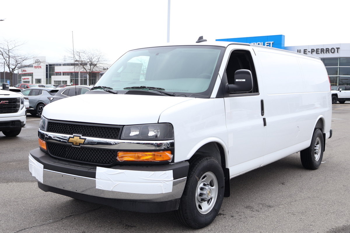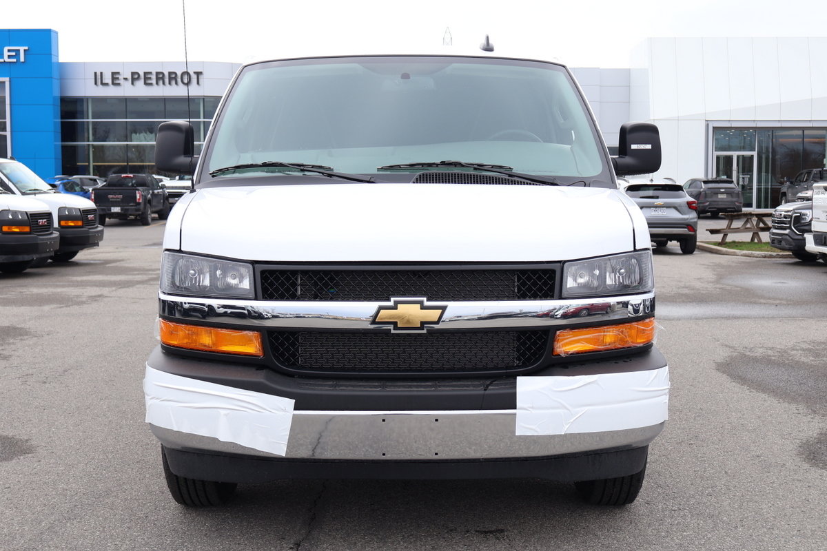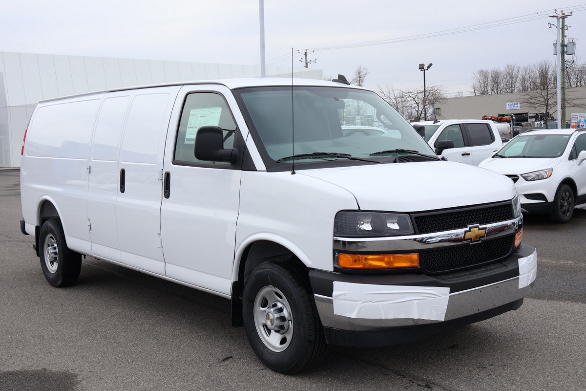Aide au démarrage en pente,Groupe commodités électriques comprend glaces à commande électrique (A31) et verrouillage électrique des portes (AU3),Serrures de porte à commande électrique avec protection antiverrouillage,Rétroviseurs extérieurs chauffants à réglage électrique noirs repliable à la main,Compatible avec point d'accès sans fil,Caméra arrière affichage de l’image de la caméra dans le rétroviseur intérieur,Rétroviseur intérieur comprend caméra arrière,Centralisateur informatique de bord: Comprend autonomie vitesse moyenne durée de vie de l’huile système de surveillance de la pression des pneus carburant consommé avertissement de glace horomètre consommation moyenne tachymètre et rappels d’entretien régulier. Affichage de boussole et de la température extérieure livrable (selon l'équipement).,Système antivol antivol Pass-Key III,Système de surveillance de la pression des pneus (sauf pour le pneu de secours),Climatiseur manuelle monozone,Sacs gonflables latéraux montés sur les sièges côtés conducteur et passager avant droitet rideaux gonflables latéraux montés au pavillon pour la première rangée avec le siège baquet à haut dossier côté conducteur uniquement (ZX1) ou les sièges baquets à haut dossier côtés conducteur et passager avant droit (ZX2) et pour deux rangées de sièges avec le groupe fourgonnette multiplace Express 5 places (ZP6),Sacs gonflables: frontaux côtés conducteur et passager avant droit,Prises de courant deux auxiliaires avec couvercle sur la console couvre-moteur de 12 V,Prise de courant 120 volts,Suspension avant indépendante avec ressorts hélicoïdaux et barre stabilisatrice,Glaces à commande électrique,Interrupteur de désactivation du sac gonflable frontal côté passager,Désembueur de glaces latérales,Panneaux de garniture: Portes latérales arrière et portes arrière à charnières,Chauffe-bloc,Poutrelles de protection dans les portes latérales en acier,Pneu de secours LT245/75R16E toutes saisons à flanc noir sous la caisse à l'arrière du véhicule,Pare-chocs avant et arrière peints en noir avec marchepied,Suspension: Essieu moteur arrière hypoïde avec ressorts multilames,Revêtement de plancher intégral en vinyle caoutchouté noir,Avertisseurs sonores de phares allumés et de clé dans le contact,Indicateur de vidange d’huile,Glaces Solar-Ray légèrement teintées à toutes les glaces,Poignées de maintien côtés conducteur et passager avant,Sélecteur de mode de remorquage/transport monté dans le tableau de bord,Freins à disque aux quatre roues avec système antiblocage,Essuie-glaces de pare-brise à balayage intermittent à bras gicleurs avec lave-glace à impulsion,Direction à commande électrique,Refroidissement refroidisseur d’huile moteur externe,Cadre caissonné en échelle pleine longueur,Compatible avec l'accès connecté Chevrolet,Roues 4 de 16 po x 6 5 po (40 6 x 16 5 cm) en acier avec cache-moyeux gris et roue de secours en acier,Pneus LT245/75R16E toutes saisons à flanc noir à l'avant,Volant colonne à manchon en acier avec verrouillage antivol noir,Carrosserie de série,Trousse pour plaque d'immatriculation avant,Instruments analogiques comprennent indicateur de vitesse compteur kilométrique avec compteur journalier indicateurs de niveau de carburant de température du moteur et de pression d'huile et voltmètre,Pare-soleil côtés conducteur et passager avant en tissu rembourrés,Système sonore AM/FM stéréo avec lecteur de fichiers MP3 fonctions de recherche et de balayage montre numérique antivol TheftLock sélection aléatoire prise auxiliaire et un haut-parleur dans chaque porte avant,Porte-gobelets 3 sur le couvercle de la console couvre-moteur,StabiliTrak système d'amélioration de la stabilité du véhicule avec traction asservie,Porte pivotante côté passager divisées 60/40,Garniture de pavillon en tissu au-dessus du conducteur et du passager avant,Console capot-moteur avec bac de rangement sans couvercle,Contenance du réservoir de carburant mi-châssis et d'environ 117 3 L (31 gallons),Crochets d’arrimage dans l’espace utilitaire six anneaux d'arrimage en forme de D sur le plancher de l'espace utilitaire,Sièges baquets avant avec garniture en vinyle avec appuie-téte et accoudoirs du côté intérieur,Pneus LT245/75R16E toutes saisons à flanc noir à l'arrière,Disposition des sièges: Baquets à haut dossier côtés conducteur et passager avant avec appuie-tête et garniture en vinyle ou en tissu.,Éclairage intérieur avec 4 plafonniers 1 au pavillon et 3 lumières à DEL sur les traverses dans l'espace utilitaire comprend interrupteur d'annulation et interrupteurs activés par les poignées de porte.,Peinture de couleur unie,Batterie 600 ampères de démarrage à froid sans entretien avec protection antidécharge et prolongation d’alimentation des accessoires,Système d’échappement silencieux et tuyau d’échappement en acier inoxydable aluminé,Verrouillage du levier de vitesses au démarrage pour les boîtes de vitesses automatiques,Compatible avec les services connectés d'OnStar et de Chevrolet,Phares bilampes à halogène,Feux de circulation de jour,Alternateur 105 A,Groupe temps froids avec chauffe-bloc moteur,PNBV 4 354 kg (9 600 lb),Pont arrière rapport de 3 42,Assistance en pente,Portières à verrouillage électrique,Miroirs Chauffants,Miroirs électriques,Partage wifi,Camera de recul,Vérification de pression Pneus,Système de sécurité,Climatiseur,Coussins impact latéraux,Coussins conducteur et passager avant,Prise de courant