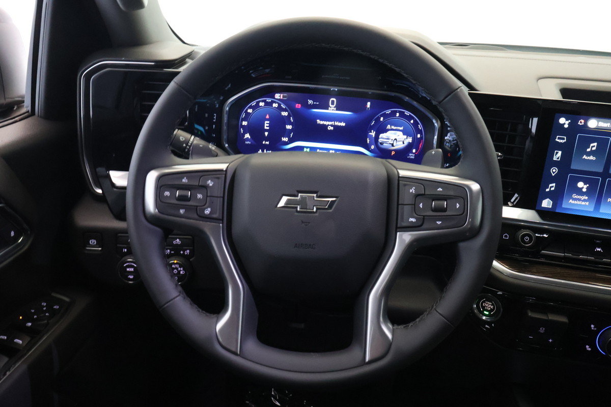 StabiliTrak système de contrôle de la stabilité avec antiroulis proactif et traction asservie avec contrôle électronique anti-louvoiement de remorque et aide au démarrage en pente,Serrures de porte à commande électrique,Système sonore Système d'infodivertissement Chevrolet 3 haut de gamme avec compatibilité avec Google intégrée(certains plans de service requis des modalités et des restrictions s'appliquent) y compris la capacité de navigation écran tactile couleur HD de 13 4 po en diagonale comprend écran multipoint AM/FM stéréo lecture audio en continu Bluetooth pour la musique et la plupart des téléphones; avec CarPlay d'Apple sans fil et Android Auto sans fil pour téléphones compatibles reconnaissance vocale évoluée applications intégrées au véhicule profils personnalisés pour les paramètres de l'infodivertissement et du véhicule,Sacs gonflables sacs gonflables frontaux à déploiement adapté pour le conducteur et le passager de la place d'extrémité avant sacs gonflables latéraux montés dans les sièges du conducteur et du passager de la place d'extrémité avant et rideaux gonflables latéraux pour les passagers des places d'extrémité avant et arrière; comprend le capteur de présence du passager pour le sac gonflable frontal de la place d'extrémité avant,Projection par téléphone sans fil pour CarPlay d'Apple et Android Auto,Fonction arrêt et démarrage automatiques,Démarrage à bouton-poussoir,Système de surveillance de la pression des pneus auto-apprentissage comprend alerte de gonflage des pneus (ne s’applique pas au pneu de secours),Éclairage espace utilitaire monté dans la cabine et intégré avec le feu de freinage central surélevé arrière avec interrupteur dans le bloc de commandes sur le côté gauche du volant (à incandescence sur les modèles à cabine classique à DEL sur les modèles à cabine multiplace et à cabine double),Phares à DEL réflecteur à DEL avec feux de jour distinctifs à DEL et animation de repérage ambre,Marchepied pare-chocs arrière,Ports USB 2 ports de recharge/données situés sur le tableau de bord,Direction assistée électrique à crémaillère,Pneu de secours 265/70R17SL toutes saisons à flanc noir,Cadre partie avant hydroformée entièrement caissonnée,Témoin d'avertissement de ceinture de sécurité arrière siège arrière,Verrou de porte-pneu verrou de porte à serrure utilisant la même clé que pour l'allumage et les serrures de portes,Poignées de maintien montés sur les montants avant pour le conducteur et le passager montés sur les montants arrière,Poignées de portes de la couleur de la carrosserie,Batterie grande capacité 730 A de démarrage à froid 80 A/h sans entretien avec protection antidécharge et prolongation d’alimentation des accessoires,Feux arrière à DELavec des feux de recul à incandescence et animation distinctifs,Boussole situé dans le groupe d'instruments,Durabed caisse de pick-up,Emblème Chevrolet noir (calandre avant),Rappel de vérification des sièges arrière,Ravitaillement sans bouchon,Affichage de la température extérieure dans l'affichage de la radio,Bouches d'aération arrière de chauffage et de climatisation,Fonction ado,Groupe suspension de série,Crochets d'arrimage (12) fixe d'une capacité de 226 8 kg (500 lb) par coin,Hayon et cache de protection de longeron de caisse supérieurs,Roue 17 po x 8 po (43 2 cm x 20 3 cm) de secours pleine grandeur en acier,Pont arrière rapport de pont de 3 23,Feux de circulation de jour avec commande automatique de l’éclairage extérieur,Bouclez votre ceinture de sécurité,Freins à disque aux quatre roues avec système antiblocageavec disques DURALIFE,Indicateur d'usure des garnitures de frein,Réglage des sièges manuel en 4 sens côté passager,Système d’échappement sortie simple,Assistance en pente,Anti-dérapage,Portières à verrouillage électrique,Système de navigation,Android Auto,AppleCar Play,Reconnaissance de la voix,Main libre Bluetooth,Écran LCD,Capteurs frontal,Coussins impact latéraux,Coussins conducteur et passager avant,Bouton arrêt et démarrage,Vérification de pression Pneus,Commandes montées sur le volant,Phares avant à DEL