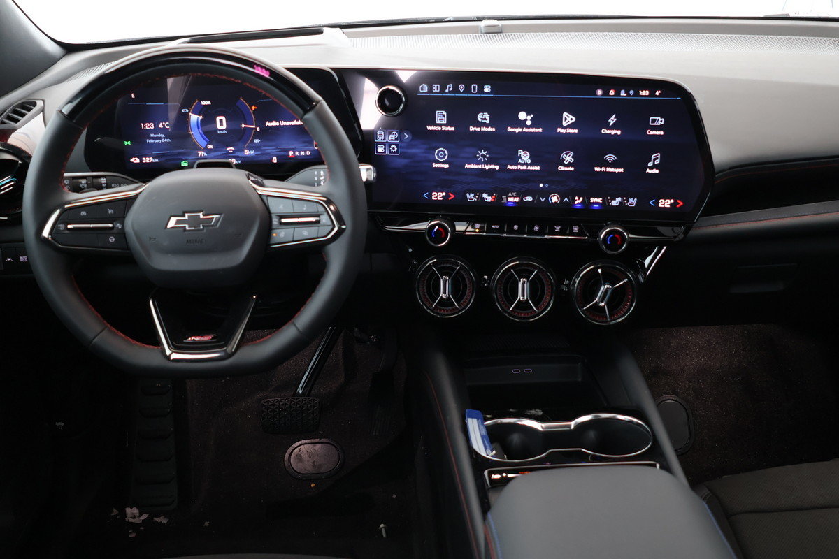 StabiliTrak système de contrôle de la stabilité,Serrures de porte à commande électrique,Rétroviseurs extérieurs chauffants à réglage électrique repliables à commande électrique à antiéblouissement automatique côté conducteur avec clignotants intégrés,Traction asservie électronique,Aide au maintien de la voie avec avertisseur de sortie,Système sonore à écran ACL couleur évolué de 17 7 po en diagonale avec compatibilité avec Google intégrée (Plan de services sélectionné requis des modalités et des restrictions s'appliquent) y compris la navigation les applications connectées les profils personnalisés pour les paramètres de chaque conducteur et la reconnaissance vocale naturelle,Navigation et assistance vocale,Alerte de prévention de collision,Hayon à commande électrique AutoSense programmable mains libres,Sacs gonflables frontaux pour les genoux et latéraux montés dans les sièges du conducteur et du passager avant et rideaux gonflables montés au pavillon pour les passagers des places d'extrémité. qui comprend le capteur de présence côté passager avant,Témoin de capteur de distance avec le véhicule devant,Démarreur à distance compatible avec les applications pour téléphone intelligent,Compatible avec point d'accès sans fil,Volant chauffant,Régulateur de vitesse adaptatif,Démarreur à distance porte-clé,Commande des phares automatique,Ouverture sans clé,Réglage des sièges électrique en 6 sens côté passager,Réglage des sièges électrique en 8 sens côté conducteur,Mémorisation de position côté conducteur rappel de positions programmées pour le siège du conducteur et les rétroviseurs extérieurs à réglage électrique,Système antivol antidémarreur,Commandes au volant commandes du système sonore du centralisateur informatique de bord et de l'interface de téléphonie,Téléphonie Bluetooth connectivité avec le système d'infodivertissement du véhicule,Réglage des sièges soutien lombaire à réglage électrique en 2 sens côté passager avant,Climatiseur commande automatique de la température à deux zones,Réglage des sièges soutien lombaire à réglage électrique en 2 sens côté conducteur,Système de surveillance de la pression des pneus à programmation automatique,Télécommande universelle comprend ouvre-porte de garage programmable,Sièges coussins et dossiers chauffants côtés conducteur et passager avant,Recharge de téléphone sans fil,Glaces arrière teinte foncée,Essuie-glaces de pare-brise à intermittence automatique,Glaces à commande électrique à descente rapide côté passager avant,Colonne de direction inclinable et télescopique,Phares à DEL,Glaces verre feuilleté acoustique pare-brise,Glaces à commande électrique à descente/montée rapide côté conducteur,Prise de courant 12 volts situé dans le compartiment de la console centrale,Phares IntelliBeam commande automatique des feux de route,SiriusXM avec plateforme 360L abonnement d'essai,Alerte de prévention de collision de pare-brise réfléchissante à DEL,Alerte de gonflage de pneu,Direction assistée avec surveillance des angles morts,Siège à alerte de sécurité,Crochet de sauvetage avant,Bouche à l'arrière de la console d'air,Caractéristique du système sonore sonorisation à 6 haut-parleurs,Tapis protecteurs avant garnis de moquette,Sièges avant baquets,Éclairage intérieur avant avec éclairage d'accueil et deux liseuses,Guidage de l'attelage,Crochet de sauvetage arrière,Cordon de recharge à deux niveaux deux modes portatif capacités 120 V (1 4 kW) et de 240 V (7 7 kW) prises NEMA 5-15 et NEMA 14-50 permutables avec connexion au véhicule SAE J1772,Vision périphérique haute définition,Crochets d’arrimage dans l’espace utilitaire,Siège arrière à dossier divisé 60/40 rabattable à plat,Moulure partie supérieure de porte noir très lustré et ceinture noir peu lustré,Centralisateur informatique de bord écran de 11 po en diagonale,Alerte de cycliste sur le côté,Groupe préparation pour de plaque d’immatriculation avant,Carénages de rétroviseurs noir très lustré,Compatible avec les services connectés d'OnStar et de Chevrolet,Essuie-glace de lunette à balayage intermittent,Poignées de portes de la couleur de la carrosserie,Console au plancher avec accoudoir,Feux de circulation de jour,Barre d'éclairage de calandre à DEL,Glaces à commande électriqueà descente rapide à l'arrière,Pneus 275/45R21 toutes saisons auto-obturants flanc noir,Freinage de détection des piétons et des cyclistes à l'avant,Pare-soleil côtés conducteur et passager avant coulissant miroir de courtoisie couverts,Batterie système de propulsion Ultium énergie nominale de la batterie de 85 kWh capacité de recharge rapide c.c. de 150 kW,Volant gainé à jante inférieure tronquée,Ceintures de sécurité à 3 points toutes les places qui comprend des tendeurs de ceinture de sécurité avant et arrière,Système antivol entrée par effraction,Éclairage intérieur plafonnier d'accueil à l'arrière et deux liseuses,OnStar One standard (OnStar One Business standard pour parc),Témoins de ceinture de sécurité côtés conducteur passager avant et places d'extrémité arrière,Freinage d'urgence automatique dans les intersections,Freinage de détection de circulation transversale arrière,Levier électronique de précision,Sièges ventilés côtés conducteur et passager avant,Éclairage intérieur ambiant multicolore,Calandre noir,Alarme à distance,Freins à disque antiblocage aux 4 roues,Pneu de secours aucun,Véhicule à zéro émission (VZE),Éclairage extérieur chorégraphie extérieure à l'approche et à l'éloignement du véhicule et recharge,Batterie 12 V/60 AH 680 ENCCA,Serrures de porte de sécurité à l'épreuve des enfants aux portes arrière,Recharge c.a. capacité de 11 5 kW,Suspension tenue de route et maniabilité,Ports USB 2 de type C situé à l'arrière de la console centrale de recharge seulement,Radar