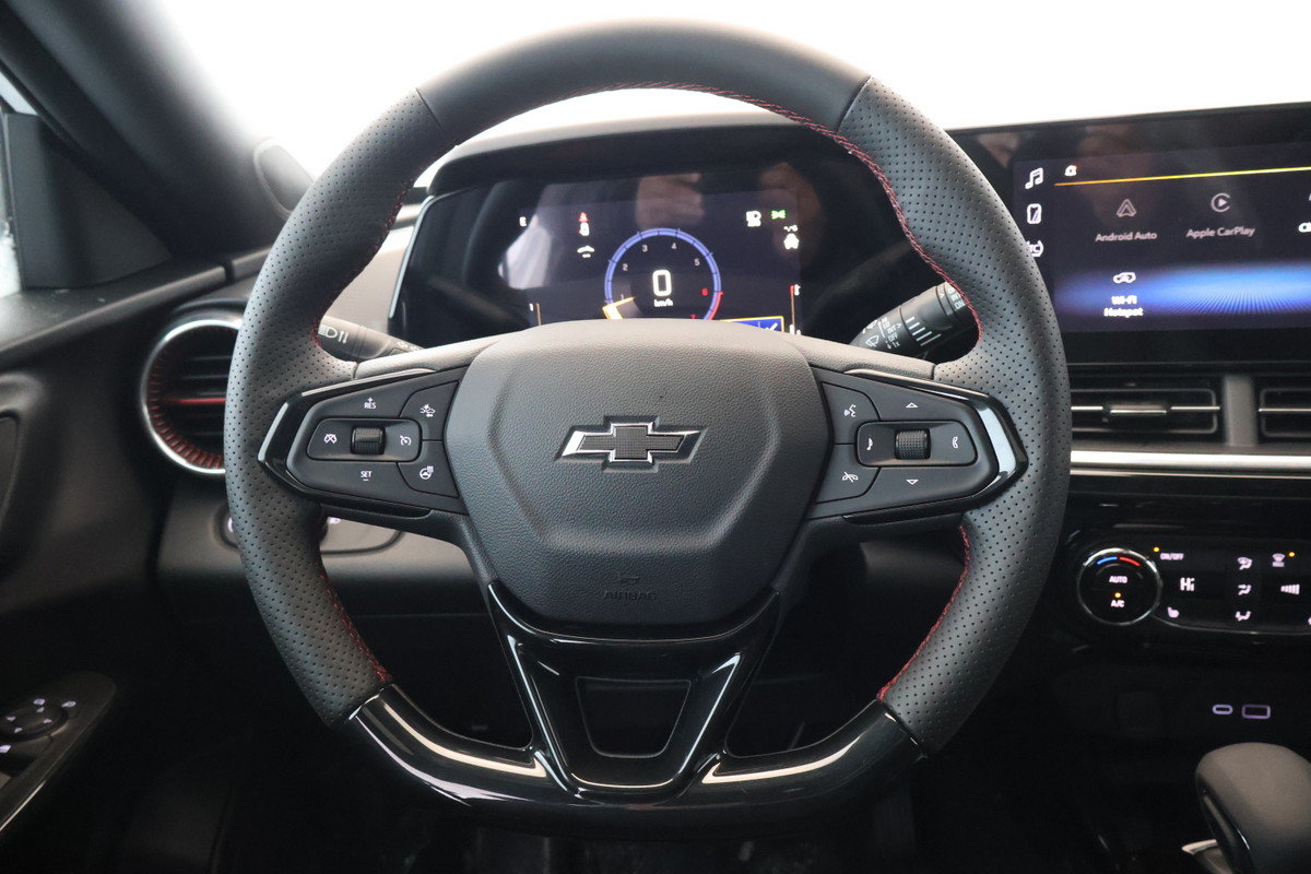 Rétroviseurs extérieurs chauffants à réglage électrique repliable à la main,Serrures de porte à commande électrique,StabiliTrak système de contrôle de la stabilité,Alerte de changement de voie avec détection d'obstacles sur les côtés,Commandes au volant commandes du système sonore du régulateur de vitesse du centralisateur informatique de réglage d'écart de l'alerte de prévention de collision et de l'interface de téléphonie,Aide au maintien de la voie avec avertisseur de sortie,Alerte de circulation transversale arrière,Alerte de prévention de collision,Témoin de capteur de distance avec le véhicule devant,Sacs gonflables frontaux et latéraux montés dans les sièges côtés conducteur et passager avant; rideaux gonflables latéraux au pavillon pour toutes les places d'extrémité et capteur de présence du passager avant,Démarreur à distance,Caméra arrière HD,Système sonore écran tactile couleur HD de 11 po en diagonale radio AM/FM stéréo. Fonctions supplémentaires pour téléphones compatibles comprenant lecture audio en continu Bluetooth pour 2 appareils actifs commande vocale du téléphone compatibilité avec Android Auto sans fil et CarPlay d'Apple sans fil,Régulateur de vitesse adaptatif,CarPlay d'Apple sans fil / Android Auto sans fil,Volant chauffant,Compatible avec point d'accès sans fil,Système antivol antidémarreur,Système de surveillance de la pression des pneus à programmation manuelle,Ouverture sans clé portes avant comprend le télédéverrouillage longue portée; le système de télédéverrouillage passif peut toujours étre programmé pour déverrouiller toutes les portes à la fois avec une seule pression ou avec deux pressions des boutons des portes avant,Réglage des sièges soutien lombaire à réglage électrique en 2 sens côté conducteur,Réglage des sièges électrique en 8 sens côté conducteur,Système antivol,Sièges chauffants côtés conducteur et passager avant,Démarrage sans clé à bouton-poussoir,Commande des phares automatique,Climatiseur commande automatique de la température,Glaces teintées foncées,Colonne de direction inclinable et télescopique,Centralisateur informatique de bord écran couleur entièrement numérique de 8 po en diagonale configurable,Phares à DEL,Protège-genoux côtés conducteur et passager avant,Glaces à commande électrique à descente rapide côté passager avant,Essuie-glaces intermittent à l'avant à vitesse variable,Glaces à commande électrique à descente rapide côté conducteur,Glaces pare-brise teinté,Prise de courant 12 volts situé sur le tableau de bord,Pont rapport de réduction finale de 3 50,SiriusXM Abonnement d'essai,PNBV 4 145 lb (1880 kg),Bouclez votre ceinture de sécurité empéche le déplacement du levier de vitesses hors de la position de stationnement tant que le conducteur n'a pas bouclé sa ceinture de sécurité programmable,Hayon manuel,Écran cache-bagages arrière,Aileron arrière,Rétroviseur intérieur manuel jour/nuit,Radar de stationnement arrière,Suspension avant jambes MacPherson,Éclairage d’accueil au pavillon à l’arrière,Phares IntelliBeam commande automatique des feux de route,Neutralisation active du bruit,Suspension arrière poutre de torsion,Alerte de gonflage de pneu,Tapis protecteurs garnis de moquette à l'arrière,Rappel de vérification des sièges arrière,Direction à commande électrique à rapport de réduction non variable électrique,Siège arrière à dossier divisé 60/40 rabattable,Console plancher avec accoudoir,Batterie 70 Ah 12 V 760 ampères de démarrage à froid,Alternateur 130 A,Brancards de toit noir,Poignées de maintien passager avant,Garniture extérieure RS emblèmes Chevrolet avant et arrière noirs garniture de calandre noire plaque signalétique noire,Poignées de maintien à l'arrière aux places d'extrémité,Freinage de détection des piétons à l'avant,Carénage avant et arrière garnitures,Décoration emblème RS,Freinage d'urgence automatique,Cric mécanique avec outils,Groupe confiance conducteur,Suspension tenue de route et maniabilité,Sièges avant baquets,Porte-cartes dossier du siège du passager avant,Antenne montée sur le toit,Caractéristique du système sonore sonorisation à 6 haut-parleurs,Appuie-têtes arrière à hauteur réglable,Embout d'échappement courbé vers le bas dissimulé,Compatible avec les services OnStar,Roues de 19 po (48 3 cm) en aluminium usiné peint en noir,Appuie-têtes à l'avant réglables en 2 sens,Essuie-glace arrière intermittent,Disque de frein nitrocarburation ferritique,Gestion de la santé du véhicule,Aide à la sécurité Chevrolet,Capteur d'humidité de l'habitacle et de température du pare-brise,Commande de freinage en pente du module ECM,Système LATCH (ancrages inférieurs et disp. d'attaches supérieures pour siège d'enfant) pour sièges d'auto pour enfant,Roue de secours 16 po (40 6 cm) en acier,Ceintures de sécurité 3 points à toutes les places avec tendeurs avant,Volant gainé à jante inférieure tronquée,Éclairage intérieur éclairage d’accueil au pavillon,Freins à disque aux quatre roues avec système antiblocage,Carénages de rétroviseurs noir très lustré,Frein de stationnement électronique,Filtre à air polluant,Pare-soleil éclairés à l'avant couverts,Feux de circulation de jour éclairage à DEL distinctif,Protection par liquide de refroidissement moteur,Ravitaillement sans bouchon,Glaces à commande électrique à descente rapide à l'arrière,Éclairage éclairage de l'espace utilitaire arrière,Poignées de portes de la couleur de la carrosserie,Système de clés 2 porte-clés,Réglage des sièges manuel en 4 sens du siège du passager avant,Alarme à distance,Commande du moteur système arrêt/démarrage,Crochet de sauvetage avant,Décoration lettrage Trax,Pommeau du levier de vitesses en uréthane,Ports USB 2 un de type A et un de type C situés dans le tableau de bord,Fonction ado une fonctionnalité conf