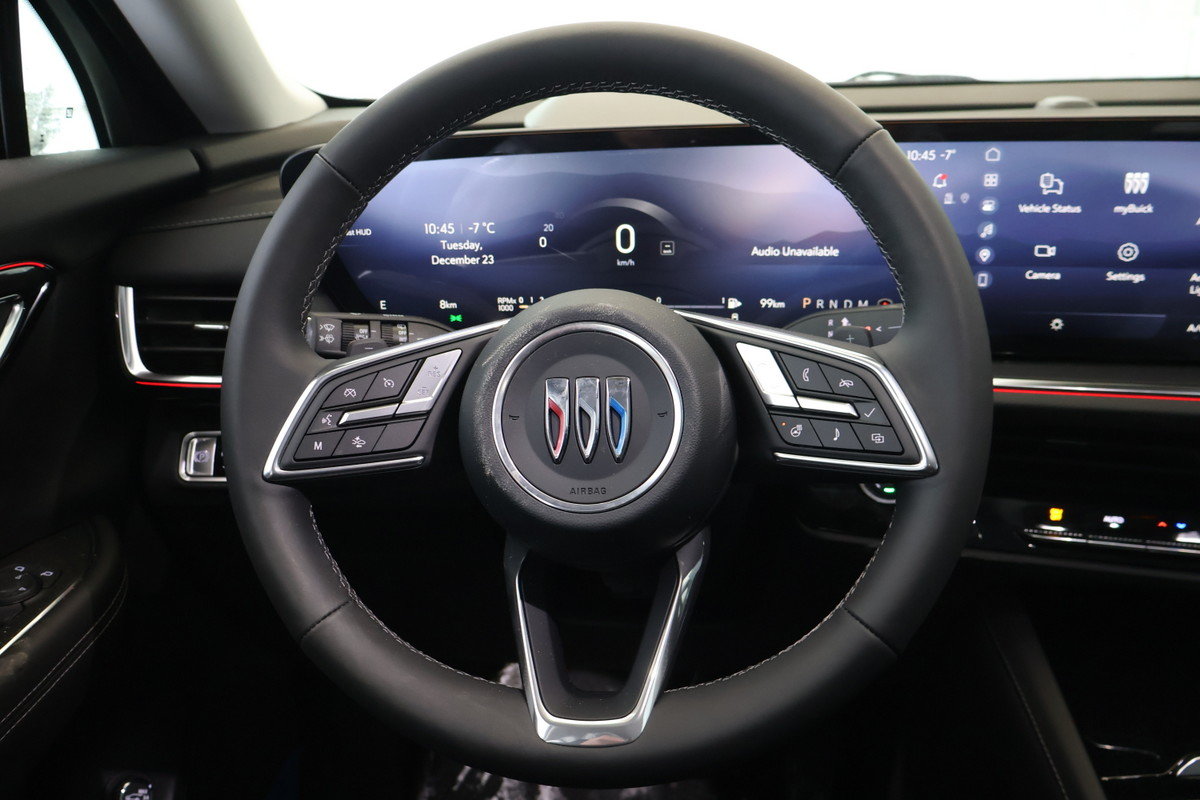 StabiliTrak système de contrôle de la stabilité avec traction asservie,Contrôle de descente,Rétroviseurs extérieurs chauffants à réglage électrique à antiéblouissement automatique côté conducteur avec mémoire de la couleur de la carrosserie repliable à la main photosensible à commande à distance avec réglages de mémoire,Aide au maintien de la voie avec avertisseur de sortie,Alerte de prévention de collision,Hayon à commande électrique à ouverture et fermeture mains libres programmable comprend projection du logo à DEL,Centre d'infodivertissement écran ultralarge de 30 po en diagonale personnalisable avec Google intégré. Procure la capacité de navigation des applications connectées des profils personnalisés pour les réglages de chaque conducteur la reconnaissance vocale naturelle l'intégration téléphonique sans fil Apple CarPlay et Android Auto pour téléphone compatible,Sac gonflable capteur de présence côté passager dispositif de sécurité gonflable avec témoin de capteur capteur de présence de passager ou d’enfant à l’avant,Témoin de capteur de distance avec le véhicule devant,Capteur capteur de présence du passager avant,Volant chauffant,Démarreur à distance,Régulateur de vitesse adaptatif,Compatible avec point d'accès sans fil,Prolongation d'alimentation des accessoires les glaces à commande électrique le système sonore et le toit ouvrant demeurent en fonction après que le contact a été coupé pendant un certain temps ou jusqu'à ce qu'une porte soit ouverte,Caméra arrière HD,CarPlay d'Apple sans fil / Android Auto sans fil,Système de surveillance de la pression des pneus à programmation automatique,Télécommande universelle comprend ouvre-porte de garage 3 canaux programmable,Sièges chauffants côtés conducteur et passager avant,Recharge sans fil,Climatiseur commande automatique de la température à deux zones avec réglages de température individuels pour conducteur et passager avant,Climatiseur liquide frigorigène à faible PRP,Mise en mémoire des réglages avec des préréglages pour le siège du conducteur et le rétroviseur extérieur,Ouverture sans clé comprend l'autonomie prolongée avec démarrage sans clé (BTM) et le verrouillage/déverrouillage automatiques des portes,Réglage des sièges électrique en 8 sens côté conducteur,Commande des phares automatique,Démarrage sans clé bouton-poussoir,Réglage des sièges soutien lombaire à réglage électrique en 4 sens côté conducteur,Colonne de direction inclinable et télescopique,Phares à DEL,Sacs gonflables frontaux et latéraux montés dans les sièges du conducteur et du passager avant pour les genoux du conducteur et rideaux gonflables montés au pavillon pour les passagers des places d'extrémité,Glaces à commande électrique à descente et montée rapides côté passager avant,Écran écran ACL à contraste élevé de 30 po en diagonale,Glaces teintées foncées,Glaces à commande électrique à descente et à montée rapides côté conducteur,Prise de courant 12 volts auxiliaire avant,Prise de courant 12 volts espace utilitaire auxiliaire,Indicateur de vitesse kilomètres / milles,Feux arrière à DEL,Trousse d’outils d'urgence routière,Technologie QuietTuning: Système exclusif de Buick pour réduire bloquer et absorber le bruit et les vibrations pour insonoriser l'habitacle,Sièges avant baquets,Essuie-glace de lunette à balayage intermittent,SiriusXM profitez d'un abonnement d'essai au forfait Le Complet,PNBV 2 300 kg (5 070 lb),Pneus P235/60R18 toutes saisons,Freinage d'urgence automatique dans les intersections,Klaxon double tonalité,Volant gainé de cuir,Filtre à air avec technologie de microfiltre,Témoin de ceinture de sécurité siège arrière,Bouches d'aération arrière,Accoudoir arrière central à l'arrière,Direction assistée avec surveillance des angles morts,Vide-poches au dos des dossiers côtés conducteur et passager avant,Freinage en pente électronique,Système de neutralisation du bruit active,Phares IntelliBeam commande automatique des feux de route,Rappel de vérification des sièges arrière,Alarme à distance,Roues de 18 po (45 7 cm) en alliage gris technique et fini usiné avec cache-moyeu noir très lustré,Frein de stationnement électronique,Compatible avec les services connectés d'OnStar et de Buick,Garnitures de frein haute performance,Désembueur lunette arrière électrique,Radar de stationnement arrière,Capteur témoin de qualité de l'air,Groupe technologie I,Réglage des sièges manuel en 6 sens du siège du passager avant,Commande du moteur technologie d'arrét/démarrage,Groupe préparation pour de plaque d’immatriculation avant,Ports USB 2 ports de recharge/données situés sur le tableau de bord,Commande manuelle sans embrayage palettes de changement de vitesse sur le levier,Feux de position réfléchissants latéraux avant,Porte-gobelets 2 dans la console avant 2 dans l'accoudoir arrière,OnStar One standard (OnStar One Business standard pour parc),Tapis protecteurs moquettés avant et arrière,Poignées de portes de la couleur de la carrosserie avec bande chromée,Freinage automatique en marche arrière,Caractéristique du système sonore sonorisation Bose à 9 hautparleurs de catégorie supérieure,Chauffe-bloc,Pneu de secours T145/70R17 SL à flanc noir,Glaces en verre feuilleté portes avant,Freinage de détection des piétons et des cyclistes à l'avant,Phares temporisation automatique,Direction à commande électrique à rapport de réduction non variable électrique,Recyclage de l'air automatique,Essence essence E15,Témoin de ceinture de sécurité côté conducteur,Glaces descente rapide à distance toutes les glaces,Visualisation tête haute,Brancards de toit argent,Revêtement de plancher moquetté,Siège banquette arrière à dossier divisé 40/60,Ceintures de sécurité 3 points à l'arrière à toutes les places,Sièges 5 places (configuration 2-3 places) comprend une banqu