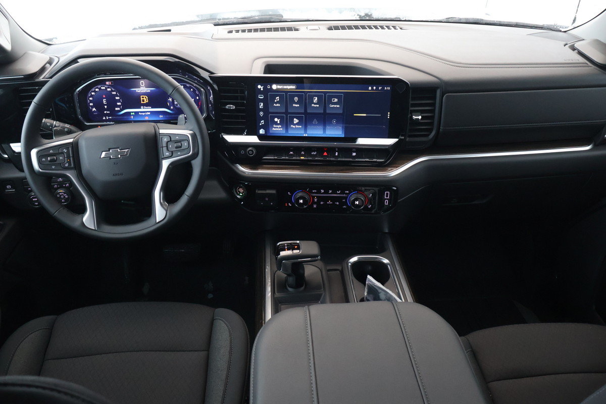 StabiliTrak système de contrôle de la stabilité avec antiroulis proactif et traction asservie avec contrôle électronique anti-louvoiement de remorque et aide au démarrage en pente,Serrures de porte à commande électrique,Système sonore Système d'infodivertissement Chevrolet 3 haut de gamme avec compatibilité avec Google intégrée(certains plans de service requis des modalités et des restrictions s'appliquent) y compris la capacité de navigation écran tactile couleur HD de 13 4 po en diagonale comprend écran multipoint AM/FM stéréo lecture audio en continu Bluetooth pour la musique et la plupart des téléphones; avec CarPlay d'Apple sans fil et Android Auto sans fil pour téléphones compatibles reconnaissance vocale évoluée applications intégrées au véhicule profils personnalisés pour les paramètres de l'infodivertissement et du véhicule,Sacs gonflables sacs gonflables frontaux à déploiement adapté pour le conducteur et le passager de la place d'extrémité avant sacs gonflables latéraux montés dans les sièges du conducteur et du passager de la place d'extrémité avant et rideaux gonflables latéraux pour les passagers des places d'extrémité avant et arrière; comprend le capteur de présence du passager pour le sac gonflable frontal de la place d'extrémité avant,Projection par téléphone sans fil pour CarPlay d'Apple et Android Auto,Fonction arrêt et démarrage automatiques,Démarrage à bouton-poussoir,Système de surveillance de la pression des pneus auto-apprentissage comprend alerte de gonflage des pneus (ne s’applique pas au pneu de secours),Éclairage espace utilitaire monté dans la cabine et intégré avec le feu de freinage central surélevé arrière avec interrupteur dans le bloc de commandes sur le côté gauche du volant (à incandescence sur les modèles à cabine classique à DEL sur les modèles à cabine multiplace et à cabine double),Phares à DEL réflecteur à DEL avec feux de jour distinctifs à DEL et animation de repérage ambre,Marchepied pare-chocs arrière,Ports USB 2 ports de recharge/données situés sur le tableau de bord,Direction assistée électrique à crémaillère,Pneu de secours 265/70R17SL toutes saisons à flanc noir,Cadre partie avant hydroformée entièrement caissonnée,Témoin d'avertissement de ceinture de sécurité arrière siège arrière,Verrou de porte-pneu verrou de porte à serrure utilisant la même clé que pour l'allumage et les serrures de portes,Poignées de maintien montés sur les montants avant pour le conducteur et le passager montés sur les montants arrière,Poignées de portes de la couleur de la carrosserie,Batterie grande capacité 730 A de démarrage à froid 80 A/h sans entretien avec protection antidécharge et prolongation d’alimentation des accessoires,Feux arrière à DELavec des feux de recul à incandescence et animation distinctifs,Boussole situé dans le groupe d'instruments,Durabed caisse de pick-up,Emblème Chevrolet noir (calandre avant),Rappel de vérification des sièges arrière,Ravitaillement sans bouchon,Affichage de la température extérieure dans l'affichage de la radio,Bouches d'aération arrière de chauffage et de climatisation,Fonction ado,Groupe suspension de série,Crochets d'arrimage (12) fixe d'une capacité de 226 8 kg (500 lb) par coin,Hayon et cache de protection de longeron de caisse supérieurs,Roue 17 po x 8 po (43 2 cm x 20 3 cm) de secours pleine grandeur en acier,Pont arrière rapport de pont de 3 23,Feux de circulation de jour avec commande automatique de l’éclairage extérieur,Bouclez votre ceinture de sécurité,Freins à disque aux quatre roues avec système antiblocageavec disques DURALIFE,Indicateur d'usure des garnitures de frein,Réglage des sièges manuel en 4 sens côté passager,Système d’échappement sortie simple,Assistance en pente,Anti-dérapage,Portières à verrouillage électrique,Système de navigation,Android Auto,AppleCar Play,Reconnaissance de la voix,Main libre Bluetooth,Écran LCD,Capteurs frontal,Coussins impact latéraux,Coussins conducteur et passager avant,Bouton arrêt et démarrage,Vérification de pression Pneus,Commandes montées sur le volant,Phares avant à DEL