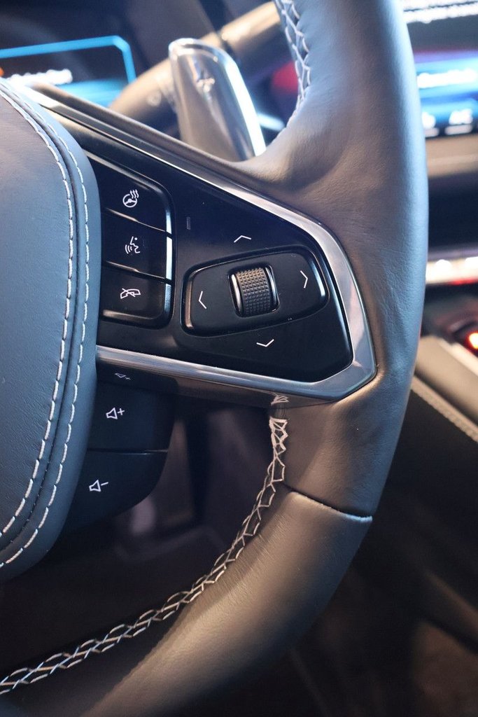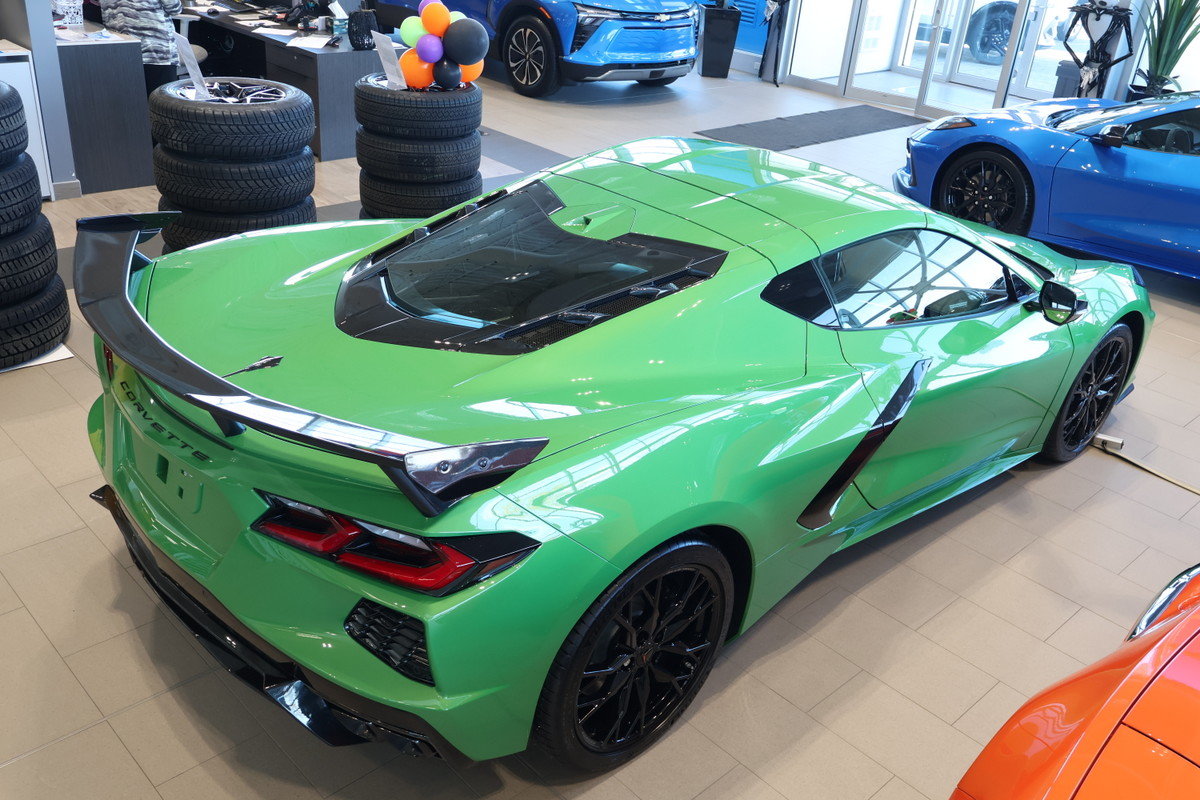 Traction asservie toutes vitesses,Serrures de porte à commande électrique programmable avec protection antiverrouillage,Système de contrôle de la stabilité de la suspension dynamique améliore la traction et la stabilité du véhicule,Aide au maintien de la voie avec avertisseur de sortie,Alerte de prévention de collision,Système sonore Système d'infodivertissement Chevrolet 3 haut de gamme avec compatibilité avec Google intégrée(certains plans de service requis des modalités et des restrictions s'appliquent) y compris la capacité de navigation écran tactile couleur HD de 8 po en diagonale comprend écran multipoint AM/FM stéréo lecture audio en continu Bluetooth pour la musique et la plupart des téléphones; avec CarPlay d'Apple sans fil et Android Auto sans fil pour téléphones compatibles reconnaissance vocale évoluée applications intégrées au véhicule profils personnalisés pour les paramètres de l'infodivertissement et du véhicule,Témoin de capteur de distance avec le véhicule devant,Colonne de direction inclinable et télescopique à réglage électrique,Télédéverrouillage et démarrage à bouton-poussoir qui comprend 2 télécommandes qui permettent de déverrouiller et d'ouvrir automatiquement les portes par simple pression de l'interrupteur de portes,Caméra arrière rétroviseur intérieur à antiéblouissement automatique avec affichage de l'image de la caméra arrière,Démarreur à distance,Compatible avec point d'accès sans fil,CarPlay d'Apple sans fil / Android Auto sans fil,Réglage des sièges électrique en 8 sens côté passager avant,Ouverture du hayon ouverture à bouton-poussoir,Réglage des sièges électrique en 8 sens côté conducteur,Commandes au volant système sonore reconnaissance vocale régulateur de vitesse et centralisateur informatique de bord,Système antivol du véhicule démarreur à bouton-poussoir antidémarreur avec alarme sonore et visuelle,Climatiseur commande automatique de la température à deux zones réglages de température individuels pour le conducteur et le passager avec affichage de la température extérieure,Groupe d'instruments 12 po en diagonalecouleur avec centralisateur informatique de bord avec plusieurs modes au choix et configurations d'indicateurs,Sacs gonflables frontaux et latéraux côtés conducteur et passager avec capteur de présence côté passager,Phares à DEL,Console plancher 2 porte-gobelets avec couvercle prise de courant auxiliaire ports USB prise d'entrée auxiliaire et rangement verrouillable,Régulateur automatique de vitesse électronique avec fonctions de réglage de vitesse et de reprise,Tapis protecteurs garni de moquette,Cadre en aluminium structure,Éléments contrastants extérieurs éclair de carbone prises d'air latérales et garnitures contrastantes de calandre avant et arrière,Volant gainé de cuir,Glaces à commande électrique à descente et montée rapides côtés conducteur et passager,Freinage de détection des piétons et des cyclistes à l'avant,Compatible avec les services connectés d'OnStar et de Chevrolet,Système de filtration de l'air avec filtre de pollen,Accès connecté Chevrolet,Couleur des ceintures de sécurité noir,Feux de circulation de jour,Pneus 245/35ZR19 à l'avant et 305/30ZR20 à l'arrière à flanc noir toutes saisons haute performance,Groupe emblèmes extérieurs éclair de carbone,Éclairage intérieur à extinction progressive,Freins à disque aux quatre roues avec système antiblocage disques de frein de 321 mm (12 6 po) à l'avant et de 339 mm (13 3 po) à l'arrière,Pare-soleil miroirs de courtoisie éclairés côtés conducteur et passager avant couverts,Direction à commande électrique électrique sensible à la vitesse crémaillère assistance variable,Indicateur de vidange d’huile,Antenne intégrée à l'avant et à l'arrière,Glaces Solar-Ray légèrement teintées,Suspension Corvette de série,Étriers noir peints,Roues de 19 po x 8 5 po (48 3 cm x 21 6 cm) à l'avant et 20 po x 11 po (50 8 cm x 27 9 cm) à l'arrière en aluminium peint en argent brillant à 5 rayons ouverts,Sièges baquets GT1,Système d’échappement en acier inoxydable aluminé avec embouts en acier inoxydable,Phares IntelliBeam commande automatique des feux de route,Différentiel mécanique à glissement limité,Panneau de toit amovible de la couleur de la carrosserie,Abonnement de 3 ans à OnStar et aux Services connectés,Freinage d'urgence automatique,Radar de stationnement arrière,Désembueur lunette arrière électrique,Gestion de la santé du véhicule comprend un avertissement précoce de problèmes touchant le véhicule,Essuie-glaces intermittent à l'avant,SiriusXM profitez d'un abonnement d'essai au forfait Le Complet,Fonction ado,Boussole numérique,Anti-dérapage,Portières à verrouillage électrique,Contrôle de la stabilité,Assistance de franchissement de voie,Avertisseur de collision frontale,Système de navigation,Android Auto,AppleCar Play,Reconnaissance de la voix,Main libre Bluetooth,Écran LCD,Capteurs frontal,Volant Inclinable électrique,Démarrage à distance,Entrée sans clé,Camera de recul,Partage wifi,Siège passager avant électrique,Bouton arrêt et démarrage,Siège conducteur électrique,Commandes montées sur le volant,Système de sécurité,Immobilisation du moteur,Température automatique,Climatiseur,Coussins impact latéraux,Phares avant à DEL,Prise de courant