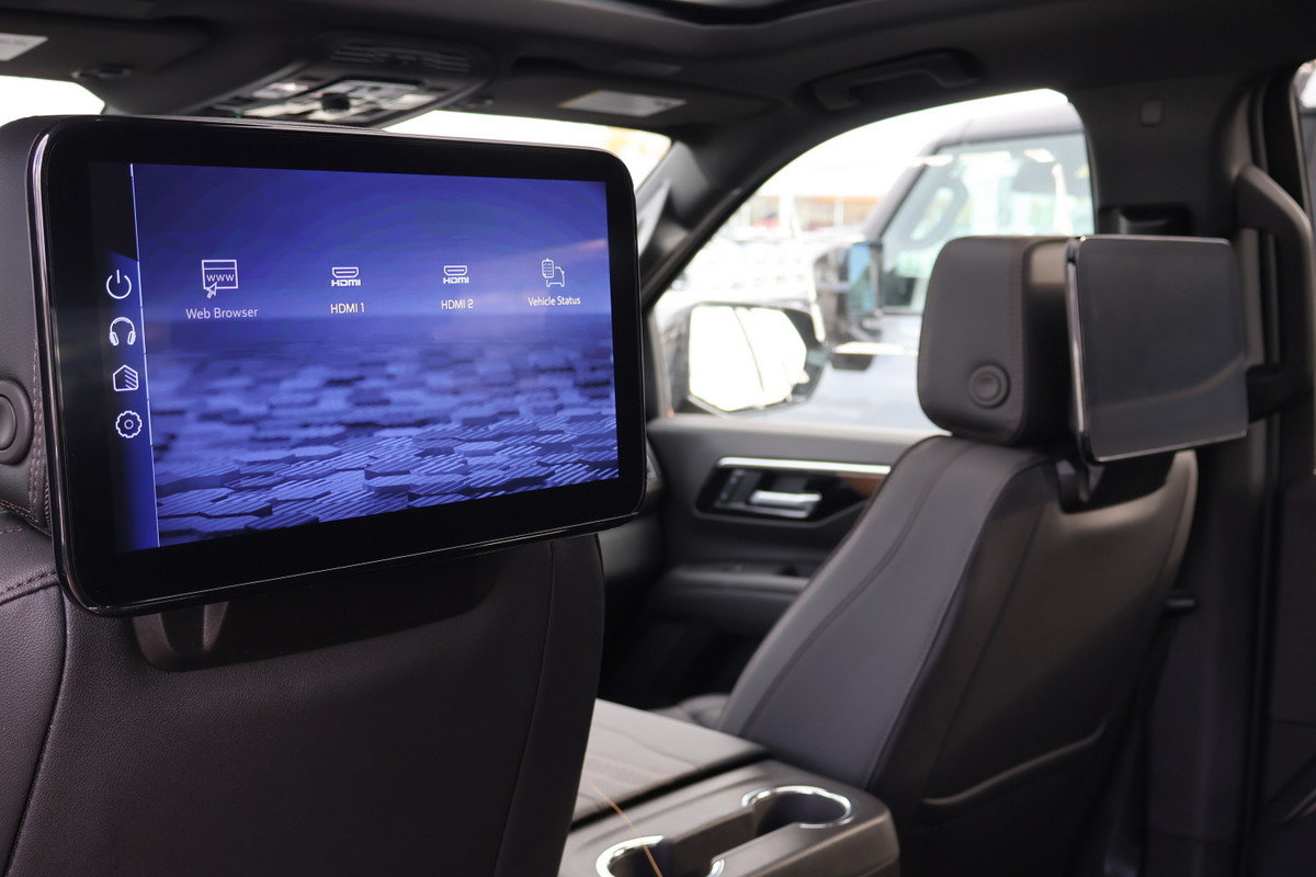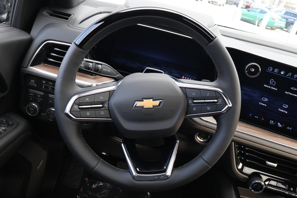 Serrures de porte à commande électrique programmable avec protection antiverrouillage et verrouillage temporisé,StabiliTrak système de contrôle de la stabilité avec aide au freinage et traction asservie,Aide au démarrage en pente,Système sonore à écran ACL couleur évolué de 17 7 po en diagonale avec compatibilité avec Google intégrée (Plan de services sélectionné requis des modalités et des restrictions s'appliquent) y compris la navigation les applications connectées les profils personnalisés pour les paramètres de chaque conducteur la reconnaissance vocale naturelle et l'intégration téléphonique,Commandes au volant du système sonore du centralisateur informatique de bord du régulateur de vitesse du bouton d'écart avec le véhicule qui précède de l'alerte de prévention de collision et volant chauffant (si le véhicule en est équipé),Alerte de prévention de collision,Aide au maintien de la voie avec avertisseur de sortie amélioré,Aide au stationnement automatique amélioré,Capteur de présence du passager pour la place d'extrémité avant pour le sac gonflable frontal de la place d'extrémité avant,Régulateur de vitesse adaptatif,Compatible avec le point d'accès sans fil 5G,CarPlay d'Apple sans fil / Android Auto sans fil,Démarreur à distance,Compatible avec point d'accès sans fil,Lave-glace de la caméra arrière,Réglage des sièges électrique en 8 sens côté conducteur,Éclairage intérieur avec plafonnier contacteur de porte côté conducteur et passager avec éclairage d'accueil temporisé éclairage de l'espace utilitaire éclairage d'accueil activé par la poignée de porte ou le télédéverrouillage et liseuses aux première et deuxième rangées,Phares IntelliBeam à phares de route automatiques,Système antivol électrique avec prévention de l'entrée par effraction,Fonction arrêt et démarrage automatiques,Système de surveillance de la pression des pneus auto-apprentissage comprend alerte de gonflage des pneus (ne s’applique pas au pneu de secours),Climatiseur commande automatique de la température à trois zones avec réglages de température individuels pour le conducteur le passager avant et les occupants des sièges arrière,Téléphonie Bluetooth connexion du téléphone cellulaire au système sonore du véhicule,Ouverture sans clé comprend télédéverrouillage longue portée,Climatiseur arrière,Démarrage sans clé bouton-poussoir,Glaces teintées foncées (toutes les glaces à l’exception du pare-brise et des glaces des portes avant qui sont légèrement teintées),Glaces à commande électrique à descente et montée rapides côté passager avant,Glaces verre feuilleté acoustique,Sacs gonflables frontaux pour le conducteur et le passager de la place d'extrémité avant sacs gonflables latéraux montés dans les sièges du conducteur et du passager de la place d'extrémité avant; sac gonflable latéral intérieur monté au siège du conducteur; rideaux gonflables latéraux aux places d'extrémité à toutes les rangées,Essuie-glaces de pare-brise à intermittence automatique,Glaces à commande électrique à descente et à montée rapides côté conducteur,Carénages de rétroviseurs de la couleur de la carrosserie,Désembueur lunette arrière électrique,Freinage automatique en marche arrière,Suspension arrière multibras avec ressorts hélicoïdaux,Commande du moteur interrupteur de désactivation du système marche/arrét automatique non verrouillable,Guidage de l'attelage,Fonctions de base OnStar (fonctions de base OnStar pour parc),Freins à disque aux quatre roues avec système antiblocageavec disques DURALIFE,Refroidissement refroidisseur d’huile de transmission auxiliaire par air de grande capacité,Ports USB 2 de types A et C recharge et données situés sur la console avant,PNBV 3 493 kg (7 700 lb),Pneu de secours P265/70R17 toutes saisons à flanc noir,Serrures de porte de sécurité à l'épreuve des enfants aux portes arrière manuel,Suspension ressort hélicoïdal concentrique à l'amortisseur à l'avant avec barre stabilisatrice,Vision périphérique haute définition,Alerte de cycliste sur le côté,Système de gestion du chargement,Ports USB 2 de type C de recharge seulement situés dans la troisième rangée,Avertisseurs sonores les phares allumés la ceinture de sécurité non bouclée côtés conducteur et passager avant droit et le clignotant activé,Rappel de vérification des sièges arrière,Colonne de direction verrouillage électrique,Pont arrière rapport de pont de 3 23,Brancards pour porte-bagages brillant monté sur le toit,SiriusXM avec plateforme 360L Abonnement d'essai. SiriusXM avec 360L transforme les déplacements de vos clients gràce à notre expérience radio la plus complète et la plus personnalisée sur la route,Tapis protecteurs garnis de moquette de couleur assortie aux première et deuxième rangées amovibles,Freinage d'urgence automatique dans les intersections alerte aux intersections freinage,Centralisateur informatique de bord écran numérique couleur de 11 po en diagonale,Différentiel mécanique à glissement limité,Contrôle de filtration de l'air du moteur,Pare-soleil miroirs de courtoisie éclairés côtés conducteur et passager avant coulissants,Revêtement de plancher moquette de couleur assortie,Marchepieds noir avec bande décorative chromée,Freinage de détection des piétons et des cyclistes à l'avant,Alerte de détection de piétons à l'arrière,Compatible avec les services OnStar,Volant à 3 rayons gainé,Cric mécanique avec outils,Prises de courant 2 120 volts situé à l’arrière de la console centrale et de l’espace utilitaire,Glaces à commande électrique avec descente rapide à l'arrière,Fonction ado,Porte-roue de secours extérieur verrouillable de type à manivelle sous le châssis à l’arrière,Poignées de maintien montant avant et montant milieu aux places d’extrémité de la deuxième rangée,Freinage d'urgence automati