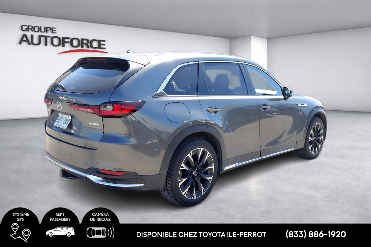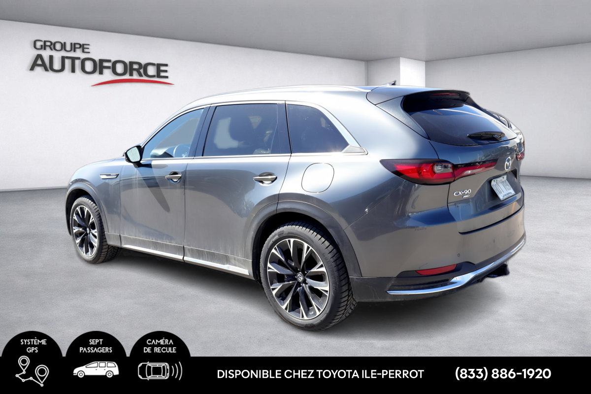 Modèle : Mazda CX-90 GT e-Skyactiv PHEV 2025 Kilométrage : 20 415 km Motorisation : Hybride branchable (Plug-in Hybrid) Transmission : Automatique Traction : AWD Condition : Aucun accident Mazda CX-90 e-Skyactiv PHEV 2025, VUS intermédiaire haut de gamme combinant performance, efficacité énergétique et luxe. Motorisation hybride branchable permettant une conduite en mode électrique, avec traction intégrale pour une conduite sécuritaire en toute saison. Véhicule récent, propre et bien entretenu. Équipements principaux Climatisation automatique trizone Groupe électrique complet (vitres, miroirs, verrous, hayon électrique) Bluetooth Apple CarPlay / Android Auto Caméra de recul Sièges avant chauffants Volant chauffant Démarrage à bouton-poussoir Écran multimédia avec commande centrale Régulateur de vitesse adaptatif Systèmes d’aide à la conduite (freinage d’urgence, maintien de voie, surveillance angles morts) Câble de recharge inclus MEILLEUR PRIX GARANTIE SUR LES ÉCHANGES! TOUS NOS VÉHICULES SONT INSPECTÉS PAR NOS TECHNICIENS CERTIFIÉS TOYOTA. GARANTIE PROLONGÉE DISPONIBLE, CARFAX INCLUS. FINANCEMENT À TAUX COMPÉTITIF, SERVICE D'IMMATRICULATION SUR PLACE. TAXES EN SUS. Concessionaire Toyota Certifié à L'ILE PERROT. MAINTENANT OUVERT 6 JOURS. Vaste choix de véhicule d'occasion à vendre. TOUTES CATÉGORIES DISPONIBLES: SOUS-COMPACT, COMPACT, BERLINE, À HAYON, HYBRIDE, PLEINE TAILLE, FOURGONNETTE, 4X4, AWD, VUS, SPORT, LUXE. Montréal | Pointe-Claire | Dollard-des-Ormeaux | Pierrefonds-Roxboro | Kirkland | Beaconsfield | Dorval | Longueuil | Ville St-Laurent | Lachine | St-Lazare | Valleyfield | Vaudreuil | Brossard | Châteauguay | Rigaud | 25 minutes du centre-ville de Montréal, 15 minutes de Pointe-Claire et Lachine. IPT2024 AUTOFORCE CE LE XLE S SE XSE LIMITED SR5 TRD CATÉGORIE A: 6 MOIS OU 10,000 KM.