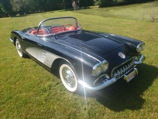 Cette Corvette de 1958 est une voiture à numéros correspondants qui a subi une restauration complète et professionnelle. Où aucun détail n'a été oublié. Le dessous de cette voiture est magnifique. Comme vous le verrez, même les marquages d'usine ont été mis en œuvre. Cette Corvette conserve toujours son moteur d'origine 283 (bloc #373789) de 290 ch et sa configuration d'injection de carburant d'origine (#7014900). Cette Corvette est livrée avec les deux toupies, un titre clair, un manuel d'origine et bien plus encore. Cette Corvette a été conservée dans un garage climatisé depuis sa finition. Il est clé en main et prêt à profiter. N'hésitez pas à appeler, envoyer un SMS ou un e-mail pour planifier un moment pour venir le vérifier ou