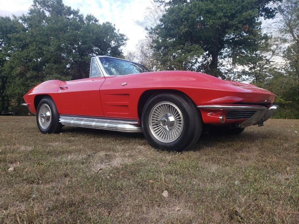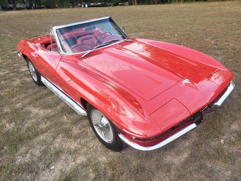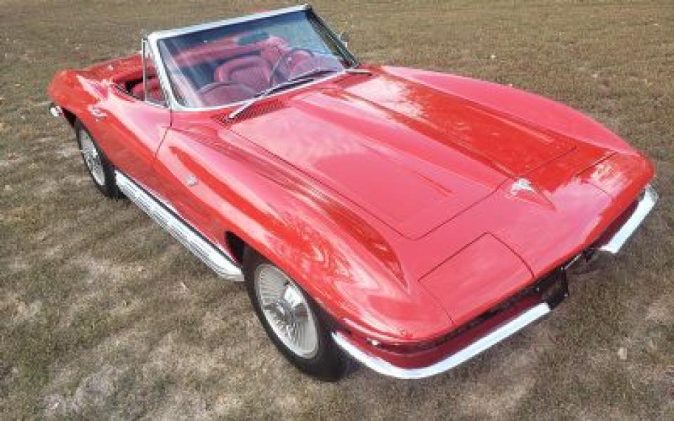 Cette Chevrolet Corvette de 1964 a été entièrement restaurée et a toujours été garée à l'intérieur. Il s'agit d'une voiture à 4 vitesses L76 (327/365 CV) qui a été commandée à St. Louis. Il a des sièges en cuir rouge, un volant en bois de teck, un toit rigide et souple, et bien plus encore. Le seul ajout que ce vétérinaire a eu est l'échappement latéral. Cette Corvette n'a besoin de rien et est prête à en profiter. Nous avons un titre clair ainsi que de la documentation supplémentaire pour cette voiture. N'hésitez pas à appeler, envoyer un SMS ou envoyer un e-mail pour planifier un moment pour venir le vérifier