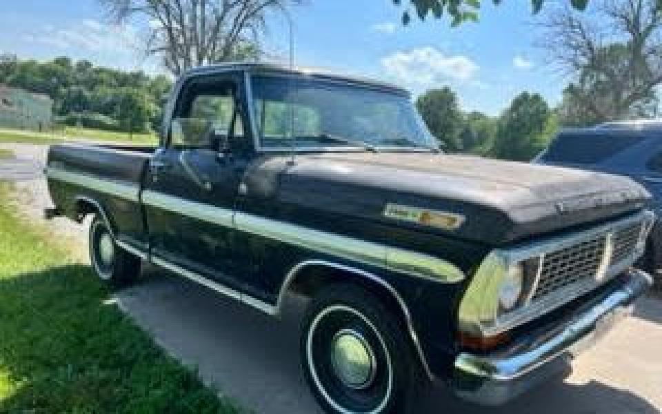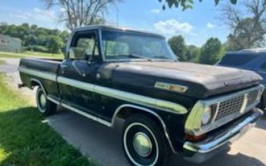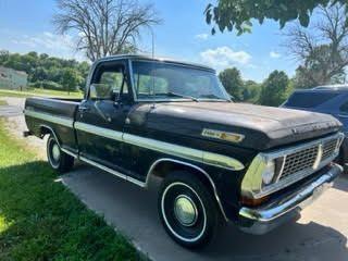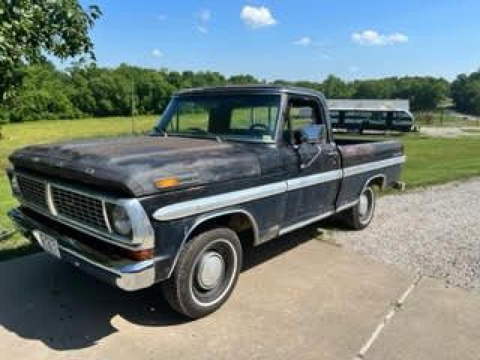 Ce pick-up Ford F100 Shortbed de 1970 est un croiseur très original et solide. Les coins de la cabine, les planchers, le capot, les ailes, le compartiment moteur sont tous très solides. Il y a de la rouille qui commence à se former dans une petite partie du lit. Le 302 a un nouveau carburateur et s'épuise fort. La vitesse 3 sur l'arbre passe ses vitesses en douceur. Le camion fonctionne et roule bien. Il vient avec un titre clair.