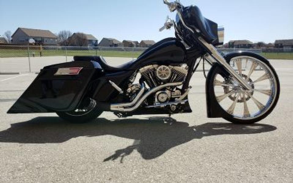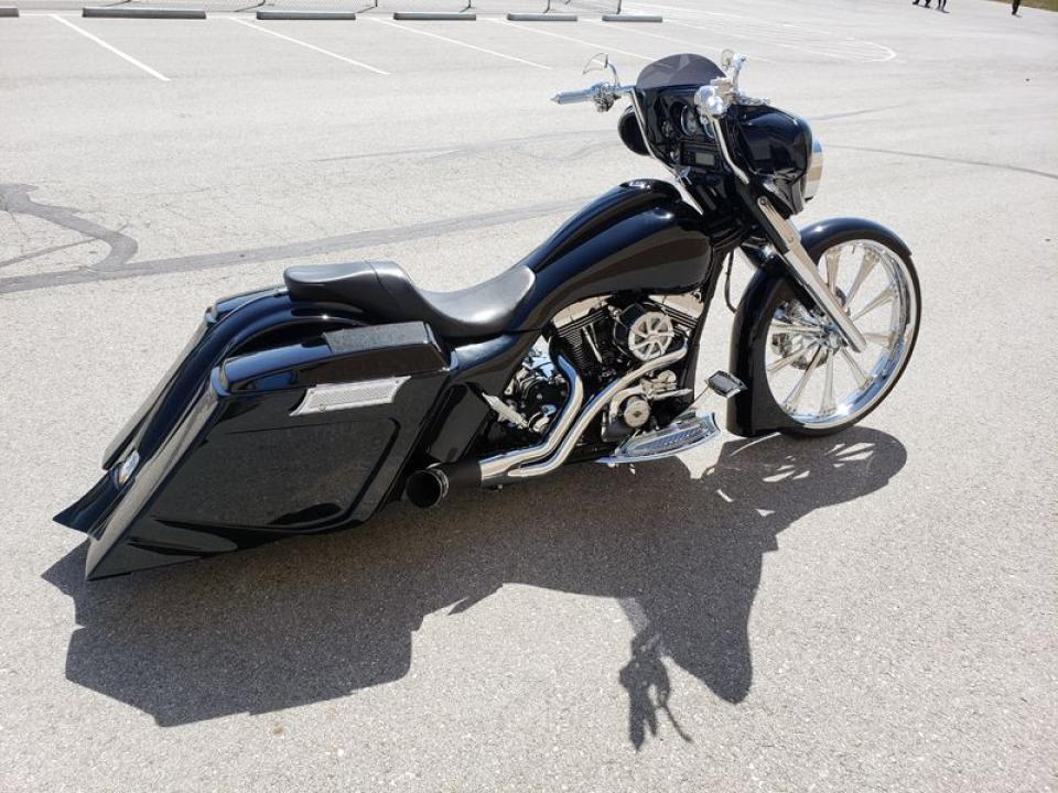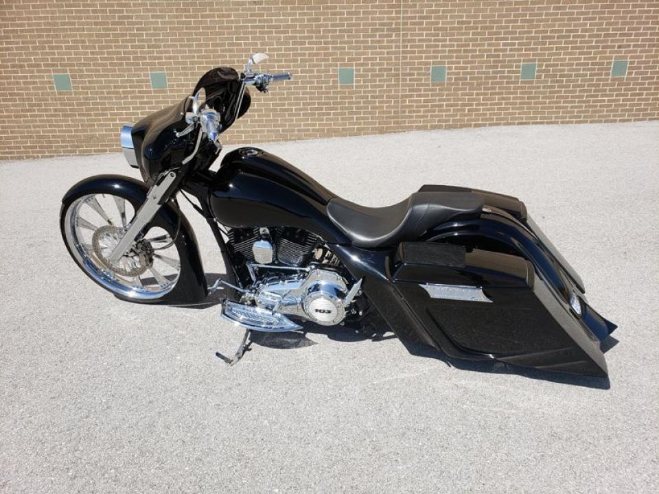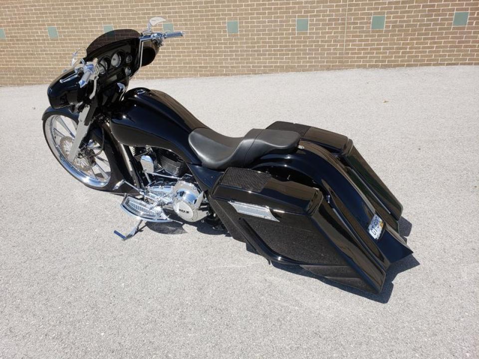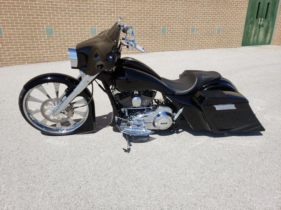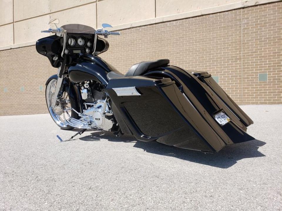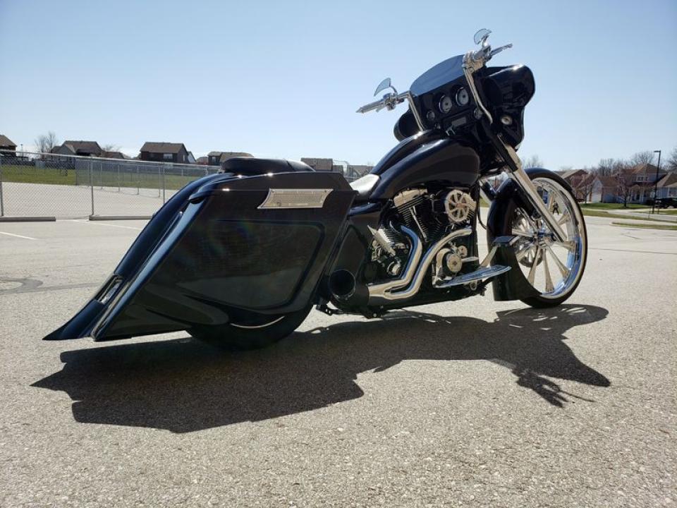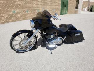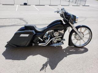 Procurez-vous cette Harley Davidson Street Glide 2011 avant qu'elle ne disparaisse ! Cette Harley n'a eu qu'un seul propriétaire et plus de 45 000 $ y ont été investis uniquement en travail personnalisé ! Elle a été achetée neuve chez Gails Harley Davidson et a toujours été garée. Il n'a jamais été déposé ni abusé. Il a eu un nouveau kit moteur où le moteur s'ennuyait et a maintenant une came 259, des têtes fraisées, une poulie de puissance dans la transmission, une roue de 26 pouces, une suspension pneumatique (Dirty Air), des sacs étirés et bien plus encore ! Le propriétaire a fait couper le cou et a fait un kit de râteau à 7 degrés avec des arbres triples HHI à 7 degrés.