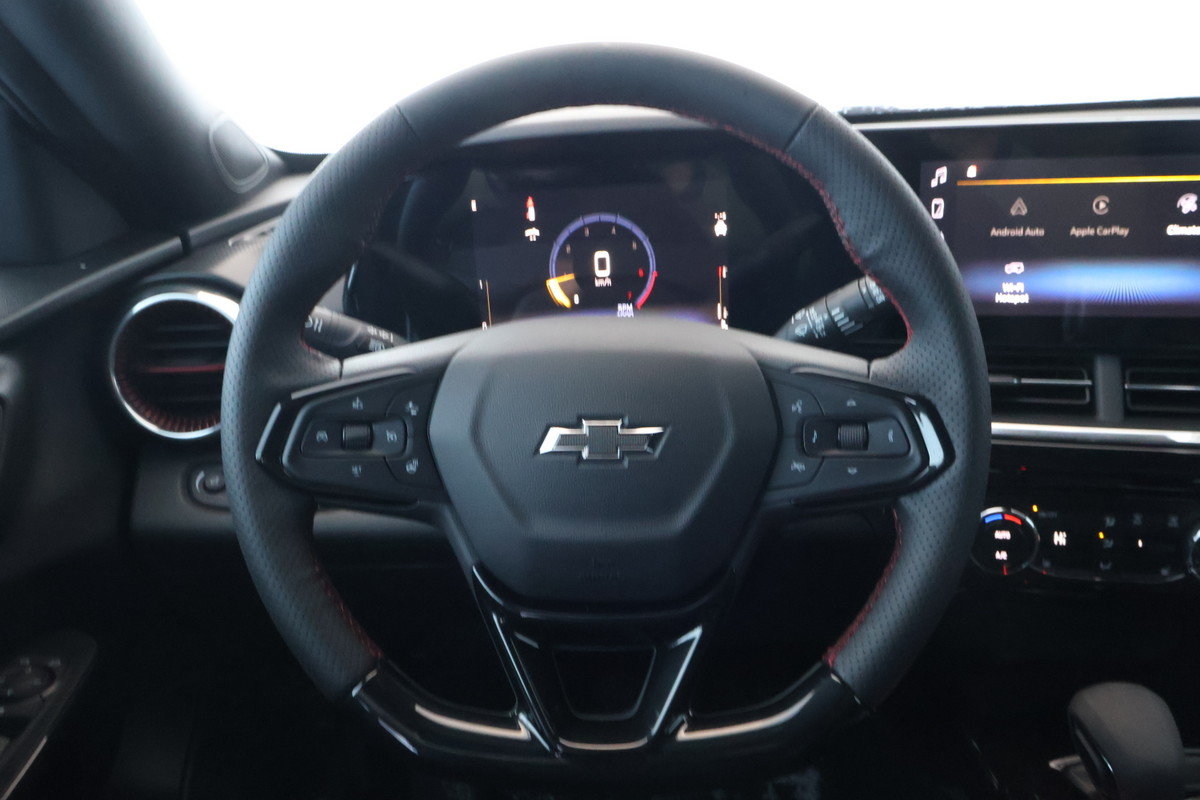 Rétroviseurs extérieurs chauffants à réglage électrique repliable à la main,Serrures de porte à commande électrique,StabiliTrak système de contrôle de la stabilité,Alerte de changement de voie avec détection d'obstacles sur les côtés,Commandes au volant commandes du système sonore du régulateur de vitesse du centralisateur informatique de réglage d'écart de l'alerte de prévention de collision et de l'interface de téléphonie,Aide au maintien de la voie avec avertisseur de sortie,Alerte de circulation transversale arrière,Alerte de prévention de collision,Témoin de capteur de distance avec le véhicule devant,Sacs gonflables frontaux et latéraux montés dans les sièges côtés conducteur et passager avant; rideaux gonflables latéraux au pavillon pour toutes les places d'extrémité et capteur de présence du passager avant,Démarreur à distance,Caméra arrière HD,Système sonore écran tactile couleur HD de 11 po en diagonale radio AM/FM stéréo. Fonctions supplémentaires pour téléphones compatibles comprenant lecture audio en continu Bluetooth pour 2 appareils actifs commande vocale du téléphone compatibilité avec Android Auto sans fil et CarPlay d'Apple sans fil,Régulateur de vitesse adaptatif,CarPlay d'Apple sans fil / Android Auto sans fil,Volant chauffant,Compatible avec point d'accès sans fil,Système antivol antidémarreur,Système de surveillance de la pression des pneus à programmation manuelle,Ouverture sans clé portes avant comprend le télédéverrouillage longue portée; le système de télédéverrouillage passif peut toujours étre programmé pour déverrouiller toutes les portes à la fois avec une seule pression ou avec deux pressions des boutons des portes avant,Réglage des sièges soutien lombaire à réglage électrique en 2 sens côté conducteur,Réglage des sièges électrique en 8 sens côté conducteur,Système antivol,Sièges chauffants côtés conducteur et passager avant,Démarrage sans clé à bouton-poussoir,Commande des phares automatique,Climatiseur commande automatique de la température,Glaces teintées foncées,Colonne de direction inclinable et télescopique,Centralisateur informatique de bord écran couleur entièrement numérique de 8 po en diagonale configurable,Phares à DEL,Protège-genoux côtés conducteur et passager avant,Glaces à commande électrique à descente rapide côté passager avant,Essuie-glaces intermittent à l'avant à vitesse variable,Glaces à commande électrique à descente rapide côté conducteur,Glaces pare-brise teinté,Prise de courant 12 volts situé sur le tableau de bord,Pont rapport de réduction finale de 3 50,SiriusXM Abonnement d'essai,PNBV 4 145 lb (1880 kg),Bouclez votre ceinture de sécurité empéche le déplacement du levier de vitesses hors de la position de stationnement tant que le conducteur n'a pas bouclé sa ceinture de sécurité programmable,Hayon manuel,Écran cache-bagages arrière,Aileron arrière,Rétroviseur intérieur manuel jour/nuit,Radar de stationnement arrière,Suspension avant jambes MacPherson,Éclairage d’accueil au pavillon à l’arrière,Phares IntelliBeam commande automatique des feux de route,Neutralisation active du bruit,Suspension arrière poutre de torsion,Alerte de gonflage de pneu,Tapis protecteurs garnis de moquette à l'arrière,Rappel de vérification des sièges arrière,Direction à commande électrique à rapport de réduction non variable électrique,Siège arrière à dossier divisé 60/40 rabattable,Console plancher avec accoudoir,Batterie 70 Ah 12 V 760 ampères de démarrage à froid,Alternateur 130 A,Brancards de toit noir,Poignées de maintien passager avant,Garniture extérieure RS emblèmes Chevrolet avant et arrière noirs garniture de calandre noire plaque signalétique noire,Poignées de maintien à l'arrière aux places d'extrémité,Freinage de détection des piétons à l'avant,Carénage avant et arrière garnitures,Décoration emblème RS,Freinage d'urgence automatique,Cric mécanique avec outils,Groupe confiance conducteur,Suspension tenue de route et maniabilité,Sièges avant baquets,Porte-cartes dossier du siège du passager avant,Antenne montée sur le toit,Caractéristique du système sonore sonorisation à 6 haut-parleurs,Appuie-têtes arrière à hauteur réglable,Embout d'échappement courbé vers le bas dissimulé,Compatible avec les services OnStar,Roues de 19 po (48 3 cm) en aluminium usiné peint en noir,Appuie-têtes à l'avant réglables en 2 sens,Essuie-glace arrière intermittent,Disque de frein nitrocarburation ferritique,Gestion de la santé du véhicule,Aide à la sécurité Chevrolet,Capteur d'humidité de l'habitacle et de température du pare-brise,Commande de freinage en pente du module ECM,Système LATCH (ancrages inférieurs et disp. d'attaches supérieures pour siège d'enfant) pour sièges d'auto pour enfant,Roue de secours 16 po (40 6 cm) en acier,Ceintures de sécurité 3 points à toutes les places avec tendeurs avant,Volant gainé à jante inférieure tronquée,Éclairage intérieur éclairage d’accueil au pavillon,Freins à disque aux quatre roues avec système antiblocage,Carénages de rétroviseurs noir très lustré,Frein de stationnement électronique,Filtre à air polluant,Pare-soleil éclairés à l'avant couverts,Feux de circulation de jour éclairage à DEL distinctif,Protection par liquide de refroidissement moteur,Ravitaillement sans bouchon,Glaces à commande électrique à descente rapide à l'arrière,Éclairage éclairage de l'espace utilitaire arrière,Poignées de portes de la couleur de la carrosserie,Système de clés 2 porte-clés,Réglage des sièges manuel en 4 sens du siège du passager avant,Alarme à distance,Commande du moteur système arrêt/démarrage,Crochet de sauvetage avant,Décoration lettrage Trax,Pommeau du levier de vitesses en uréthane,Ports USB 2 un de type A et un de type C situés dans le tableau de bord,Fonction ado une fonctionnalité conf