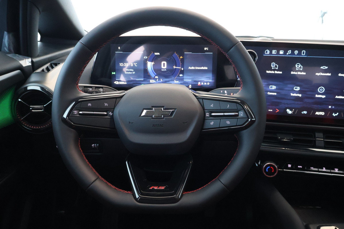 Rétroviseurs extérieurs chauffants à réglage électrique repliable à la main,Aide au maintien de la voie avec avertisseur de sortie amélioré,Système de navigation grace à la compatibilité avec Google intégré (certains plans de service sont requis des modalités et des restrictions s'appliquent),Hayon mains libres programmable à commande électrique AutoSense,Alerte de prévention de collision,Système sonore à écran ACL couleur évolué de 17 7 po en diagonale avec compatibilité avec Google intégrée (Plan de services sélectionné requis des modalités et des restrictions s'appliquent) y compris la navigation les applications connectées les profils personnalisés pour les paramètres de chaque conducteur et la reconnaissance vocale naturelle,Sac gonflable capteur de présence côté passager dispositif de sécurité gonflable avec témoin de capteur capteur de présence de passager ou d’enfant à l’avant,Témoin de capteur de distance avec le véhicule devant,Sacs gonflables frontaux pour les genoux et latéraux montés dans les sièges du conducteur et du passager avant et rideaux gonflables montés au pavillon pour les passagers des places d'extrémité. qui comprend le capteur de présence côté passager avant,Démarreur à distance application pour téléphones intelligents,Compatible avec le point d'accès sans fil 5G,Régulateur de vitesse adaptatif,Volant chauffant automatique,Réglage des sièges électrique en 8 sens côté conducteur,Recharge sans fil portable,Système antivol entrée par effraction,Sièges coussins et dossiers chauffants côtés conducteur et passager avant,Phares IntelliBeam à phares de route automatiques,Siège soutien lombaire à réglage électrique côté conducteur,Climatiseur commande automatique de la température monozone,Colonne de direction inclinable et télescopique,Glaces intimité,Phares à DEL avec phares de jour à DEL,Glaces arrière teinte foncée,Prises de courant (2) de 12 V panneau inférieur du tableau de bord et espace utilitaire auxiliaire,Ceinture de sécurité capteur de présence du passager avant,Véhicule à zéro émission (VZE),Groupe sécurité active 2,Freinage automatique en marche arrière,Système de verrouillage télédéverrouillage longue portée,Préparation pour enrouleur de dispositif de retenue verrouillage automatique,Levier électronique de précision,Fonction ado une fonctionnalité configurable qui vous permet de personnaliser certains paramètres du véhicule associés à un porte-clés pour encourager des habitudes de conduite sécuritaire. Elle peut limiter certaines caractéristiques livrables du véhicule et empéche la désactivation de certains systèmes de sécurité. Elle comprend la fonction boucler pour rouler qui empéche le conducteur de quitter la position de stationnement pendant 20 secondes maximum si la ceinture de sécurité du conducteur n'est pas bouclée. Un rapport de bord vous renseigne sur les habitudes de conduite et vous aide à continuer à encadrer votre nouveau conducteur,Guidage de l'attelage,Infodivertissement haut,Ports USB 2 de type C situés à l'arrière de la console centrale de recharge seulement,Préparation pour remorquage câblage (ne comprend pas le récepteur d'attelage),Recharge c.a. capacité de 11 5 kW,Carénages de rétroviseurs peint,Essuie-glaces intermittent à l'avant,Brancards de toit noir,Éclairage intérieur ambiant multicolore,Unité d'entraînement électrique principal 1 moteur inverseur intégré système de stationnement aimants 76F,Freinage de détection des piétons et des cyclistes à l'avant,Batterie système de propulsion Ultium,Crochet de sauvetage avant,Témoin d'avertissement de ceinture de sécurité arrière,OnStar One standard (OnStar One Business standard pour parc),Aide à la sécurité Chevrolet,Tapis protecteurs avant garnis de moquette,Caractéristique du système sonore sonorisation à 6 haut-parleurs,Tapis protecteurs arrière garni de moquette,Accoudoir arrière central à l'arrière avec porte-gobelets,Groupe préparation pour de plaque d’immatriculation avant (Compris avec les commandes destinées aux États qui exigent une plaque d'immatriculation avant),Poignées de portes de la couleur de la carrosserie,Alerte de prévention de collision de pare-brise réfléchissante à DEL,Freinage d'urgence automatique amélioré,Pare-soleil côtés conducteur et passager avant coulissant miroir de courtoisie couverts,Alerte de cycliste sur le côté,Suspension tenue de route et maniabilité,Roues de 21 po (53 3 cm) en aluminium peint en noir,Centralisateur informatique de bord écran de 11 po en diagonale,Feux arrière à DEL,Pneus 275/40R21 toutes saisons à flanc noir auto-obturants,Glaces à commande électrique avec montée rapide côté conducteur et descente rapide de toutes les glaces,Écran capteur de présence automatique du passager avant,Freinage d'urgence automatique dans les intersections,Klaxon double tonalité,Phares barre lumineuse centrale,Réglage des sièges manuel en 6 sens du siège du passager avant,Roue de secours aucun,Compatible avec les services automobiles Google,Volant gainé à jante inférieure tronquée,Tendeur de ceinture de sécurité arrière,Boîte à gants,Direction assistée avec surveillance des angles morts,Rappel de vérification des sièges arrière,Vision périphérique haute définition,Reconnaissance des panneaux de circulation amélioré indicateur de capteur,SiriusXM avec plateforme 360L Abonnement d'essai,Glaces latérales avant en verre trempé à vitrage solaire,Console au plancher avec accoudoir,Serrures de porte de sécurité à l'épreuve des enfants aux portes arrière,Batterie 12 V/60 AH 680 ENCCA,Crochet de sauvetage arrière,Freins disque de 17 po avant et arrière à étrier coulissant avec disques DURALIFE avec capacité de récupération. Freins à disque antiblocage aux 4 roues,Ports USB 2 ports de recharge/données de type C situés sur la console au planche