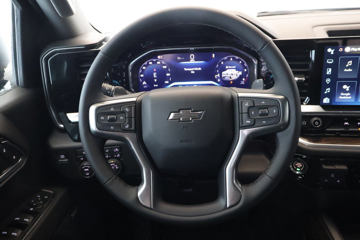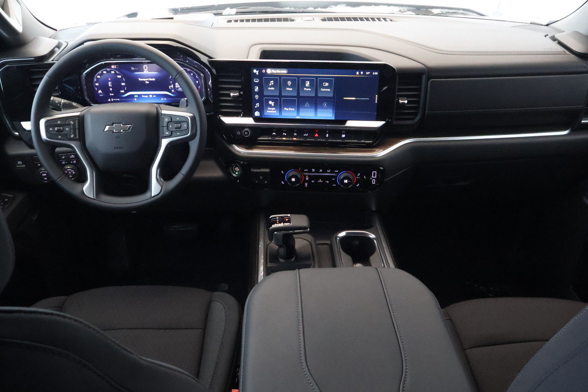 StabiliTrak système de contrôle de la stabilité avec antiroulis proactif et traction asservie avec contrôle électronique anti-louvoiement de remorque et aide au démarrage en pente,Serrures de porte à commande électrique,Système sonore Système d'infodivertissement Chevrolet 3 haut de gamme avec compatibilité avec Google intégrée(certains plans de service requis des modalités et des restrictions s'appliquent) y compris la capacité de navigation écran tactile couleur HD de 13 4 po en diagonale comprend écran multipoint AM/FM stéréo lecture audio en continu Bluetooth pour la musique et la plupart des téléphones; avec CarPlay d'Apple sans fil et Android Auto sans fil pour téléphones compatibles reconnaissance vocale évoluée applications intégrées au véhicule profils personnalisés pour les paramètres de l'infodivertissement et du véhicule,Sacs gonflables sacs gonflables frontaux à déploiement adapté pour le conducteur et le passager de la place d'extrémité avant sacs gonflables latéraux montés dans les sièges du conducteur et du passager de la place d'extrémité avant et rideaux gonflables latéraux pour les passagers des places d'extrémité avant et arrière; comprend le capteur de présence du passager pour le sac gonflable frontal de la place d'extrémité avant,Projection par téléphone sans fil pour CarPlay d'Apple et Android Auto,Fonction arrêt et démarrage automatiques,Démarrage à bouton-poussoir,Système de surveillance de la pression des pneus auto-apprentissage comprend alerte de gonflage des pneus (ne s’applique pas au pneu de secours),Éclairage espace utilitaire monté dans la cabine et intégré avec le feu de freinage central surélevé arrière avec interrupteur dans le bloc de commandes sur le côté gauche du volant (à incandescence sur les modèles à cabine classique à DEL sur les modèles à cabine multiplace et à cabine double),Phares à DEL réflecteur à DEL avec feux de jour distinctifs à DEL et animation de repérage ambre,Marchepied pare-chocs arrière,Ports USB 2 ports de recharge/données situés sur le tableau de bord,Direction assistée électrique à crémaillère,Pneu de secours 265/70R17SL toutes saisons à flanc noir,Cadre partie avant hydroformée entièrement caissonnée,Témoin d'avertissement de ceinture de sécurité arrière siège arrière,Verrou de porte-pneu verrou de porte à serrure utilisant la même clé que pour l'allumage et les serrures de portes,Poignées de maintien montés sur les montants avant pour le conducteur et le passager montés sur les montants arrière,Poignées de portes de la couleur de la carrosserie,Batterie grande capacité 730 A de démarrage à froid 80 A/h sans entretien avec protection antidécharge et prolongation d’alimentation des accessoires,Feux arrière à DELavec des feux de recul à incandescence et animation distinctifs,Boussole situé dans le groupe d'instruments,Durabed caisse de pick-up,Emblème Chevrolet noir (calandre avant),Rappel de vérification des sièges arrière,Ravitaillement sans bouchon,Affichage de la température extérieure dans l'affichage de la radio,Bouches d'aération arrière de chauffage et de climatisation,Fonction ado,Groupe suspension de série,Crochets d'arrimage (12) fixe d'une capacité de 226 8 kg (500 lb) par coin,Hayon et cache de protection de longeron de caisse supérieurs,Roue 17 po x 8 po (43 2 cm x 20 3 cm) de secours pleine grandeur en acier,Pont arrière rapport de pont de 3 23,Feux de circulation de jour avec commande automatique de l’éclairage extérieur,Bouclez votre ceinture de sécurité,Freins à disque aux quatre roues avec système antiblocageavec disques DURALIFE,Indicateur d'usure des garnitures de frein,Réglage des sièges manuel en 4 sens côté passager,Système d’échappement sortie simple,Assistance en pente,Anti-dérapage,Portières à verrouillage électrique,Système de navigation,Android Auto,AppleCar Play,Reconnaissance de la voix,Main libre Bluetooth,Écran LCD,Capteurs frontal,Coussins impact latéraux,Coussins conducteur et passager avant,Bouton arrêt et démarrage,Vérification de pression Pneus,Commandes montées sur le volant,Phares avant à DEL