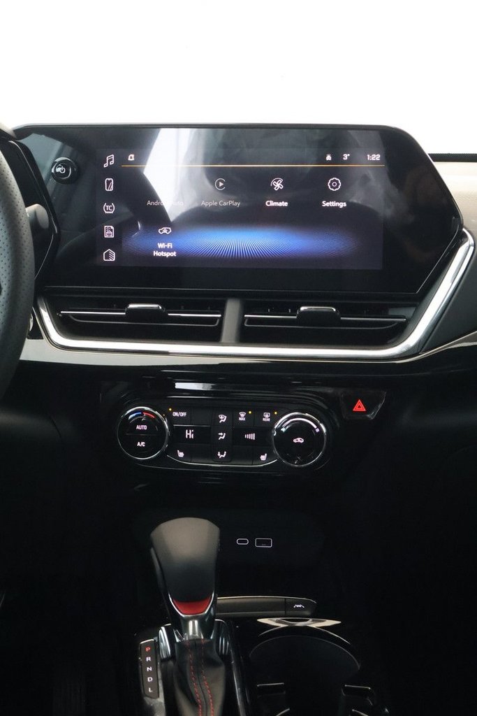 Rétroviseurs extérieurs chauffants à réglage électrique repliable à la main,Serrures de porte à commande électrique,StabiliTrak système de contrôle de la stabilité,Alerte de changement de voie avec détection d'obstacles sur les côtés,Commandes au volant commandes du système sonore du régulateur de vitesse du centralisateur informatique de réglage d'écart de l'alerte de prévention de collision et de l'interface de téléphonie,Aide au maintien de la voie avec avertisseur de sortie,Alerte de circulation transversale arrière,Alerte de prévention de collision,Témoin de capteur de distance avec le véhicule devant,Sacs gonflables frontaux et latéraux montés dans les sièges côtés conducteur et passager avant; rideaux gonflables latéraux au pavillon pour toutes les places d'extrémité et capteur de présence du passager avant,Démarreur à distance,Caméra arrière HD,Système sonore écran tactile couleur HD de 11 po en diagonale radio AM/FM stéréo. Fonctions supplémentaires pour téléphones compatibles comprenant lecture audio en continu Bluetooth pour 2 appareils actifs commande vocale du téléphone compatibilité avec Android Auto sans fil et CarPlay d'Apple sans fil,Régulateur de vitesse adaptatif,CarPlay d'Apple sans fil / Android Auto sans fil,Volant chauffant,Compatible avec point d'accès sans fil,Système antivol antidémarreur,Système de surveillance de la pression des pneus à programmation manuelle,Ouverture sans clé portes avant comprend le télédéverrouillage longue portée; le système de télédéverrouillage passif peut toujours étre programmé pour déverrouiller toutes les portes à la fois avec une seule pression ou avec deux pressions des boutons des portes avant,Réglage des sièges soutien lombaire à réglage électrique en 2 sens côté conducteur,Réglage des sièges électrique en 8 sens côté conducteur,Système antivol,Sièges chauffants côtés conducteur et passager avant,Démarrage sans clé à bouton-poussoir,Commande des phares automatique,Climatiseur commande automatique de la température,Glaces teintées foncées,Colonne de direction inclinable et télescopique,Centralisateur informatique de bord écran couleur entièrement numérique de 8 po en diagonale configurable,Phares à DEL,Protège-genoux côtés conducteur et passager avant,Glaces à commande électrique à descente rapide côté passager avant,Essuie-glaces intermittent à l'avant à vitesse variable,Glaces à commande électrique à descente rapide côté conducteur,Glaces pare-brise teinté,Prise de courant 12 volts situé sur le tableau de bord,Pont rapport de réduction finale de 3 50,SiriusXM Abonnement d'essai,PNBV 4 145 lb (1880 kg),Bouclez votre ceinture de sécurité empéche le déplacement du levier de vitesses hors de la position de stationnement tant que le conducteur n'a pas bouclé sa ceinture de sécurité programmable,Hayon manuel,Écran cache-bagages arrière,Aileron arrière,Rétroviseur intérieur manuel jour/nuit,Radar de stationnement arrière,Suspension avant jambes MacPherson,Éclairage d’accueil au pavillon à l’arrière,Phares IntelliBeam commande automatique des feux de route,Neutralisation active du bruit,Suspension arrière poutre de torsion,Alerte de gonflage de pneu,Tapis protecteurs garnis de moquette à l'arrière,Rappel de vérification des sièges arrière,Direction à commande électrique à rapport de réduction non variable électrique,Siège arrière à dossier divisé 60/40 rabattable,Console plancher avec accoudoir,Batterie 70 Ah 12 V 760 ampères de démarrage à froid,Alternateur 130 A,Brancards de toit noir,Poignées de maintien passager avant,Garniture extérieure RS emblèmes Chevrolet avant et arrière noirs garniture de calandre noire plaque signalétique noire,Poignées de maintien à l'arrière aux places d'extrémité,Freinage de détection des piétons à l'avant,Carénage avant et arrière garnitures,Décoration emblème RS,Freinage d'urgence automatique,Cric mécanique avec outils,Groupe confiance conducteur,Suspension tenue de route et maniabilité,Sièges avant baquets,Porte-cartes dossier du siège du passager avant,Antenne montée sur le toit,Caractéristique du système sonore sonorisation à 6 haut-parleurs,Appuie-têtes arrière à hauteur réglable,Embout d'échappement courbé vers le bas dissimulé,Compatible avec les services OnStar,Roues de 19 po (48 3 cm) en aluminium usiné peint en noir,Appuie-têtes à l'avant réglables en 2 sens,Essuie-glace arrière intermittent,Disque de frein nitrocarburation ferritique,Gestion de la santé du véhicule,Aide à la sécurité Chevrolet,Capteur d'humidité de l'habitacle et de température du pare-brise,Commande de freinage en pente du module ECM,Système LATCH (ancrages inférieurs et disp. d'attaches supérieures pour siège d'enfant) pour sièges d'auto pour enfant,Roue de secours 16 po (40 6 cm) en acier,Ceintures de sécurité 3 points à toutes les places avec tendeurs avant,Volant gainé à jante inférieure tronquée,Éclairage intérieur éclairage d’accueil au pavillon,Freins à disque aux quatre roues avec système antiblocage,Carénages de rétroviseurs noir très lustré,Frein de stationnement électronique,Filtre à air polluant,Pare-soleil éclairés à l'avant couverts,Feux de circulation de jour éclairage à DEL distinctif,Protection par liquide de refroidissement moteur,Ravitaillement sans bouchon,Glaces à commande électrique à descente rapide à l'arrière,Éclairage éclairage de l'espace utilitaire arrière,Poignées de portes de la couleur de la carrosserie,Système de clés 2 porte-clés,Réglage des sièges manuel en 4 sens du siège du passager avant,Alarme à distance,Commande du moteur système arrêt/démarrage,Crochet de sauvetage avant,Décoration lettrage Trax,Pommeau du levier de vitesses en uréthane,Ports USB 2 un de type A et un de type C situés dans le tableau de bord,Fonction ado une fonctionnalité conf