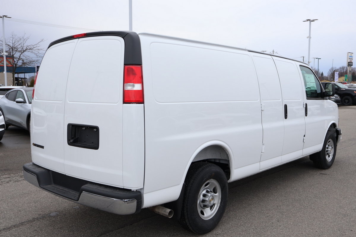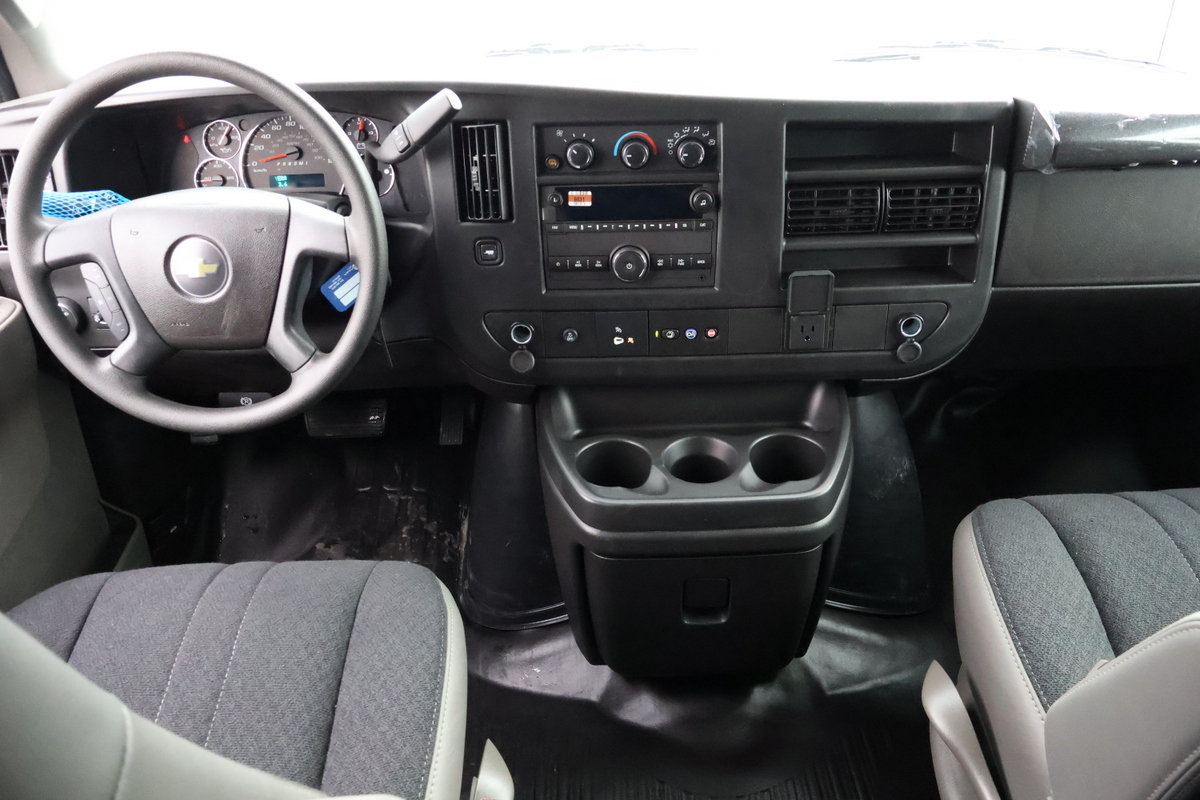 Aide au démarrage en pente,Groupe commodités électriques comprend glaces à commande électrique (A31) et verrouillage électrique des portes (AU3),Serrures de porte à commande électrique avec protection antiverrouillage,Rétroviseurs extérieurs chauffants à réglage électrique noirs repliable à la main,Compatible avec point d'accès sans fil,Caméra arrière affichage de l’image de la caméra dans le rétroviseur intérieur,Rétroviseur intérieur comprend caméra arrière,Centralisateur informatique de bord: Comprend autonomie vitesse moyenne durée de vie de l’huile système de surveillance de la pression des pneus carburant consommé avertissement de glace horomètre consommation moyenne tachymètre et rappels d’entretien régulier. Affichage de boussole et de la température extérieure livrable (selon l'équipement).,Système antivol antivol Pass-Key III,Système de surveillance de la pression des pneus (sauf pour le pneu de secours),Climatiseur manuelle monozone,Sacs gonflables latéraux montés sur les sièges côtés conducteur et passager avant droitet rideaux gonflables latéraux montés au pavillon pour la première rangée avec le siège baquet à haut dossier côté conducteur uniquement (ZX1) ou les sièges baquets à haut dossier côtés conducteur et passager avant droit (ZX2) et pour deux rangées de sièges avec le groupe fourgonnette multiplace Express 5 places (ZP6),Sacs gonflables: frontaux côtés conducteur et passager avant droit,Prises de courant deux auxiliaires avec couvercle sur la console couvre-moteur de 12 V,Prise de courant 120 volts,Suspension avant indépendante avec ressorts hélicoïdaux et barre stabilisatrice,Glaces à commande électrique,Interrupteur de désactivation du sac gonflable frontal côté passager,Désembueur de glaces latérales,Panneaux de garniture: Portes latérales arrière et portes arrière à charnières,Chauffe-bloc,Poutrelles de protection dans les portes latérales en acier,Pneu de secours LT245/75R16E toutes saisons à flanc noir sous la caisse à l'arrière du véhicule,Pare-chocs avant et arrière peints en noir avec marchepied,Suspension: Essieu moteur arrière hypoïde avec ressorts multilames,Revêtement de plancher intégral en vinyle caoutchouté noir,Avertisseurs sonores de phares allumés et de clé dans le contact,Indicateur de vidange d’huile,Glaces Solar-Ray légèrement teintées à toutes les glaces,Poignées de maintien côtés conducteur et passager avant,Sélecteur de mode de remorquage/transport monté dans le tableau de bord,Freins à disque aux quatre roues avec système antiblocage,Essuie-glaces de pare-brise à balayage intermittent à bras gicleurs avec lave-glace à impulsion,Direction à commande électrique,Refroidissement refroidisseur d’huile moteur externe,Cadre caissonné en échelle pleine longueur,Compatible avec l'accès connecté Chevrolet,Roues 4 de 16 po x 6 5 po (40 6 x 16 5 cm) en acier avec cache-moyeux gris et roue de secours en acier,Pneus LT245/75R16E toutes saisons à flanc noir à l'avant,Volant colonne à manchon en acier avec verrouillage antivol noir,Carrosserie de série,Trousse pour plaque d'immatriculation avant,Instruments analogiques comprennent indicateur de vitesse compteur kilométrique avec compteur journalier indicateurs de niveau de carburant de température du moteur et de pression d'huile et voltmètre,Pare-soleil côtés conducteur et passager avant en tissu rembourrés,Système sonore AM/FM stéréo avec lecteur de fichiers MP3 fonctions de recherche et de balayage montre numérique antivol TheftLock sélection aléatoire prise auxiliaire et un haut-parleur dans chaque porte avant,Porte-gobelets 3 sur le couvercle de la console couvre-moteur,StabiliTrak système d'amélioration de la stabilité du véhicule avec traction asservie,Porte pivotante côté passager divisées 60/40,Garniture de pavillon en tissu au-dessus du conducteur et du passager avant,Console capot-moteur avec bac de rangement sans couvercle,Contenance du réservoir de carburant mi-châssis et d'environ 117 3 L (31 gallons),Crochets d’arrimage dans l’espace utilitaire six anneaux d'arrimage en forme de D sur le plancher de l'espace utilitaire,Sièges baquets avant avec garniture en vinyle avec appuie-téte et accoudoirs du côté intérieur,Pneus LT245/75R16E toutes saisons à flanc noir à l'arrière,Disposition des sièges: Baquets à haut dossier côtés conducteur et passager avant avec appuie-tête et garniture en vinyle ou en tissu.,Éclairage intérieur avec 4 plafonniers 1 au pavillon et 3 lumières à DEL sur les traverses dans l'espace utilitaire comprend interrupteur d'annulation et interrupteurs activés par les poignées de porte.,Peinture de couleur unie,Batterie 600 ampères de démarrage à froid sans entretien avec protection antidécharge et prolongation d’alimentation des accessoires,Système d’échappement silencieux et tuyau d’échappement en acier inoxydable aluminé,Verrouillage du levier de vitesses au démarrage pour les boîtes de vitesses automatiques,Compatible avec les services connectés d'OnStar et de Chevrolet,Phares bilampes à halogène,Feux de circulation de jour,Alternateur 105 A,Groupe temps froids avec chauffe-bloc moteur,PNBV 4 354 kg (9 600 lb),Pont arrière rapport de 3 42,Assistance en pente,Portières à verrouillage électrique,Miroirs Chauffants,Miroirs électriques,Partage wifi,Camera de recul,Vérification de pression Pneus,Système de sécurité,Climatiseur,Coussins impact latéraux,Coussins conducteur et passager avant,Prise de courant