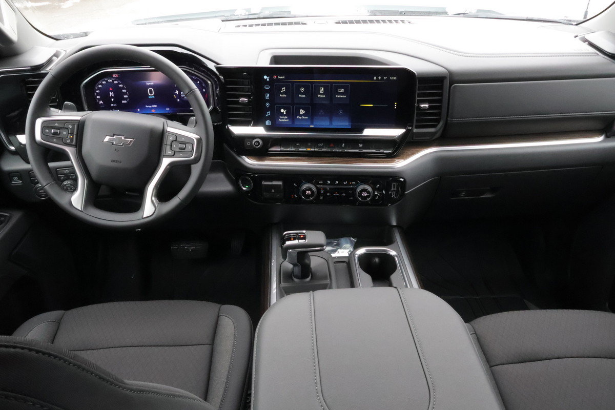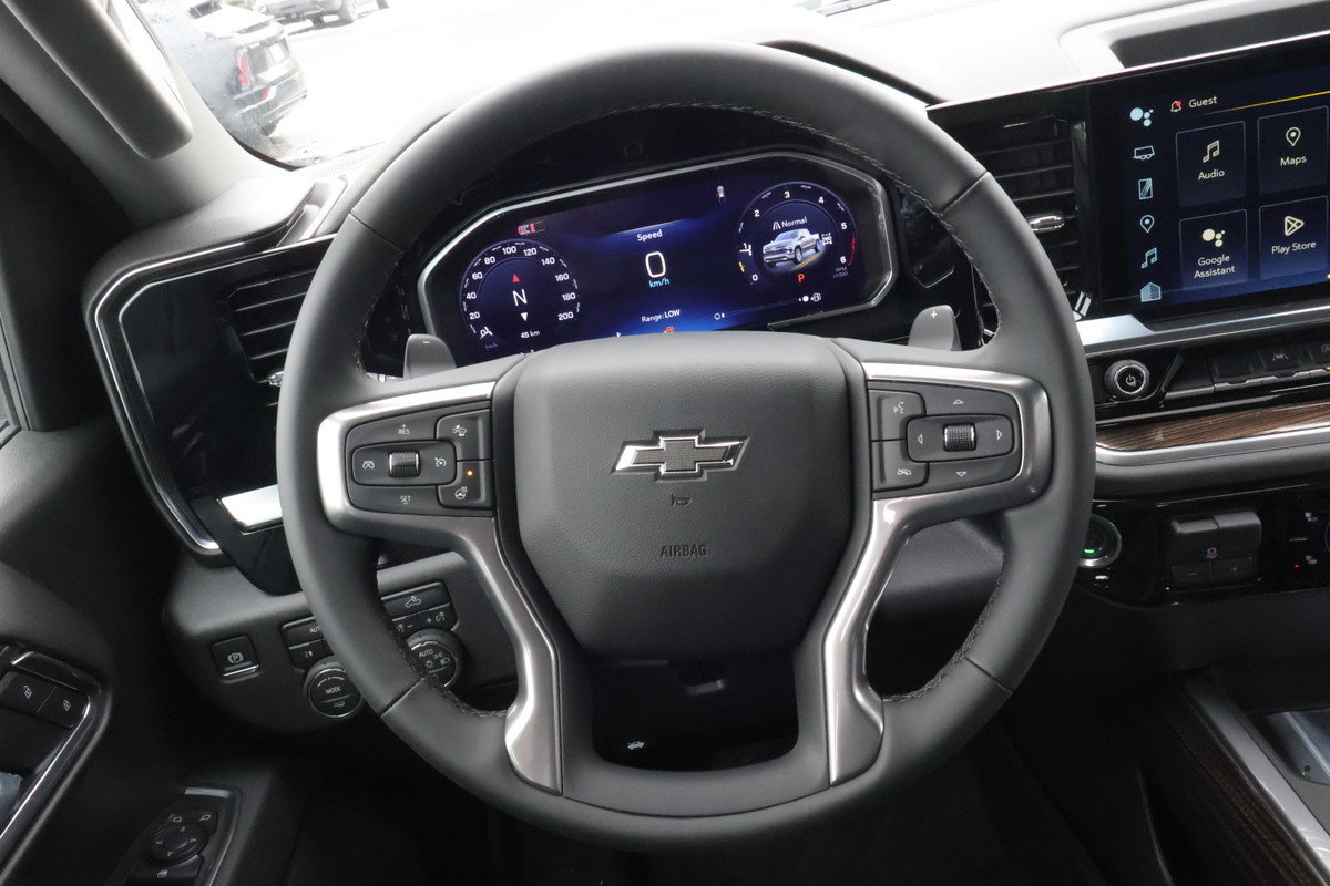 StabiliTrak système de contrôle de la stabilité avec antiroulis proactif et traction asservie avec contrôle électronique anti-louvoiement de remorque et aide au démarrage en pente,Serrures de porte à commande électrique,Système sonore Système d'infodivertissement Chevrolet 3 haut de gamme avec compatibilité avec Google intégrée(certains plans de service requis des modalités et des restrictions s'appliquent) y compris la capacité de navigation écran tactile couleur HD de 13 4 po en diagonale comprend écran multipoint AM/FM stéréo lecture audio en continu Bluetooth pour la musique et la plupart des téléphones; avec CarPlay d'Apple sans fil et Android Auto sans fil pour téléphones compatibles reconnaissance vocale évoluée applications intégrées au véhicule profils personnalisés pour les paramètres de l'infodivertissement et du véhicule,Sacs gonflables sacs gonflables frontaux à déploiement adapté pour le conducteur et le passager de la place d'extrémité avant sacs gonflables latéraux montés dans les sièges du conducteur et du passager de la place d'extrémité avant et rideaux gonflables latéraux pour les passagers des places d'extrémité avant et arrière; comprend le capteur de présence du passager pour le sac gonflable frontal de la place d'extrémité avant,Projection par téléphone sans fil pour CarPlay d'Apple et Android Auto,Fonction arrêt et démarrage automatiques,Démarrage à bouton-poussoir,Système de surveillance de la pression des pneus auto-apprentissage comprend alerte de gonflage des pneus (ne s’applique pas au pneu de secours),Éclairage espace utilitaire monté dans la cabine et intégré avec le feu de freinage central surélevé arrière avec interrupteur dans le bloc de commandes sur le côté gauche du volant (à incandescence sur les modèles à cabine classique à DEL sur les modèles à cabine multiplace et à cabine double),Phares à DEL réflecteur à DEL avec feux de jour distinctifs à DEL et animation de repérage ambre,Marchepied pare-chocs arrière,Ports USB 2 ports de recharge/données situés sur le tableau de bord,Direction assistée électrique à crémaillère,Pneu de secours 265/70R17SL toutes saisons à flanc noir,Cadre partie avant hydroformée entièrement caissonnée,Témoin d'avertissement de ceinture de sécurité arrière siège arrière,Verrou de porte-pneu verrou de porte à serrure utilisant la même clé que pour l'allumage et les serrures de portes,Poignées de maintien montés sur les montants avant pour le conducteur et le passager montés sur les montants arrière,Poignées de portes de la couleur de la carrosserie,Batterie grande capacité 730 A de démarrage à froid 80 A/h sans entretien avec protection antidécharge et prolongation d’alimentation des accessoires,Feux arrière à DELavec des feux de recul à incandescence et animation distinctifs,Boussole situé dans le groupe d'instruments,Durabed caisse de pick-up,Emblème Chevrolet noir (calandre avant),Rappel de vérification des sièges arrière,Ravitaillement sans bouchon,Affichage de la température extérieure dans l'affichage de la radio,Bouches d'aération arrière de chauffage et de climatisation,Fonction ado,Groupe suspension de série,Crochets d'arrimage (12) fixe d'une capacité de 226 8 kg (500 lb) par coin,Hayon et cache de protection de longeron de caisse supérieurs,Roue 17 po x 8 po (43 2 cm x 20 3 cm) de secours pleine grandeur en acier,Pont arrière rapport de pont de 3 23,Feux de circulation de jour avec commande automatique de l’éclairage extérieur,Bouclez votre ceinture de sécurité,Freins à disque aux quatre roues avec système antiblocageavec disques DURALIFE,Indicateur d'usure des garnitures de frein,Réglage des sièges manuel en 4 sens côté passager,Système d’échappement sortie simple,Assistance en pente,Anti-dérapage,Portières à verrouillage électrique,Système de navigation,Android Auto,AppleCar Play,Reconnaissance de la voix,Main libre Bluetooth,Écran LCD,Capteurs frontal,Coussins impact latéraux,Coussins conducteur et passager avant,Bouton arrêt et démarrage,Vérification de pression Pneus,Commandes montées sur le volant,Phares avant à DEL