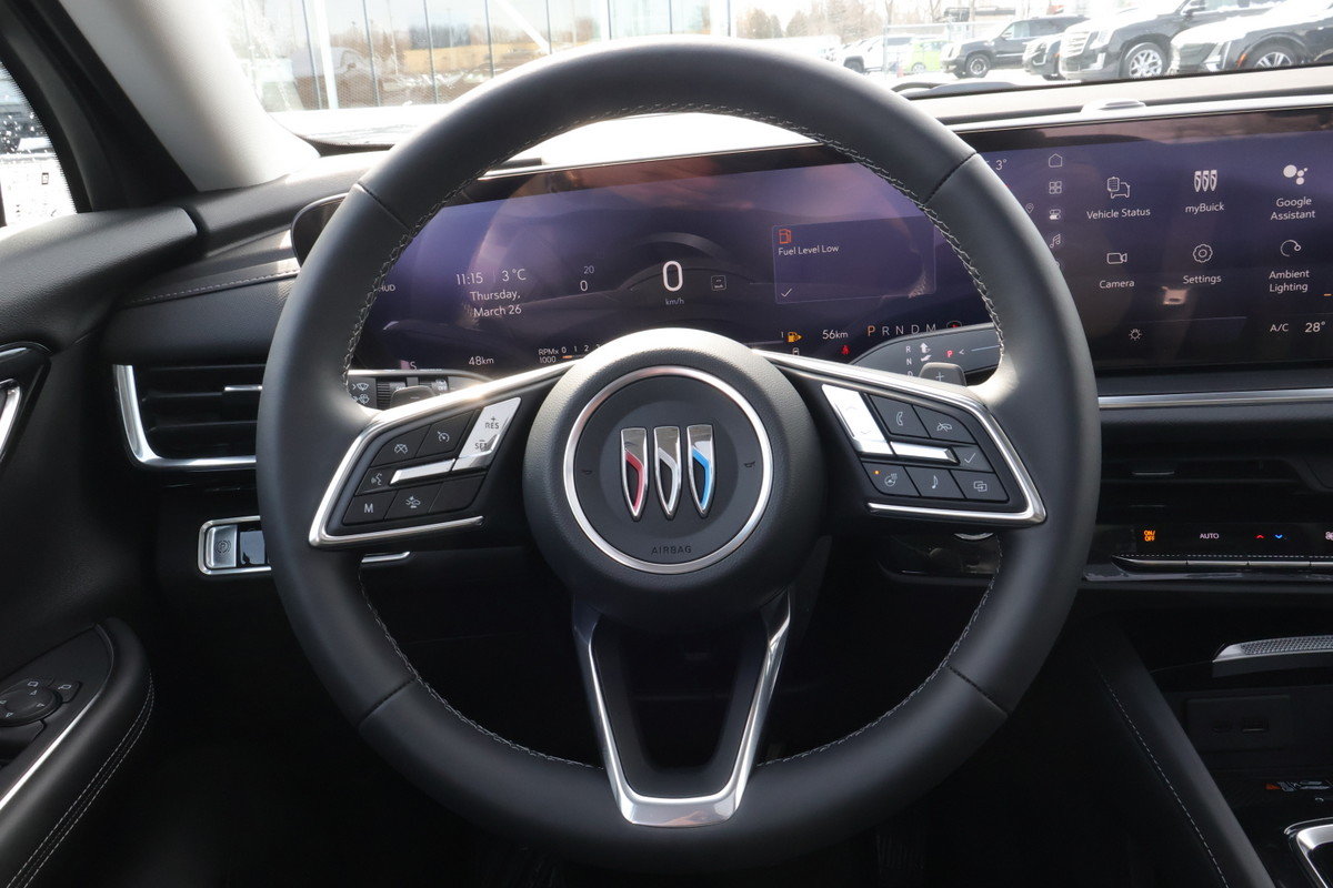 StabiliTrak système de contrôle de la stabilité avec traction asservie,Contrôle de descente,Rétroviseurs extérieurs chauffants à réglage électrique à antiéblouissement automatique côté conducteur avec mémoire de la couleur de la carrosserie repliable à la main photosensible à commande à distance avec réglages de mémoire,Aide au maintien de la voie avec avertisseur de sortie,Alerte de prévention de collision,Hayon à commande électrique à ouverture et fermeture mains libres programmable comprend projection du logo à DEL,Centre d'infodivertissement écran ultralarge de 30 po en diagonale personnalisable avec Google intégré. Procure la capacité de navigation des applications connectées des profils personnalisés pour les réglages de chaque conducteur la reconnaissance vocale naturelle l'intégration téléphonique sans fil Apple CarPlay et Android Auto pour téléphone compatible,Sac gonflable capteur de présence côté passager dispositif de sécurité gonflable avec témoin de capteur capteur de présence de passager ou d’enfant à l’avant,Témoin de capteur de distance avec le véhicule devant,Capteur capteur de présence du passager avant,Volant chauffant,Démarreur à distance,Régulateur de vitesse adaptatif,Compatible avec point d'accès sans fil,Prolongation d'alimentation des accessoires les glaces à commande électrique le système sonore et le toit ouvrant demeurent en fonction après que le contact a été coupé pendant un certain temps ou jusqu'à ce qu'une porte soit ouverte,Caméra arrière HD,CarPlay d'Apple sans fil / Android Auto sans fil,Système de surveillance de la pression des pneus à programmation automatique,Télécommande universelle comprend ouvre-porte de garage 3 canaux programmable,Sièges chauffants côtés conducteur et passager avant,Recharge sans fil,Climatiseur commande automatique de la température à deux zones avec réglages de température individuels pour conducteur et passager avant,Climatiseur liquide frigorigène à faible PRP,Mise en mémoire des réglages avec des préréglages pour le siège du conducteur et le rétroviseur extérieur,Ouverture sans clé comprend l'autonomie prolongée avec démarrage sans clé (BTM) et le verrouillage/déverrouillage automatiques des portes,Réglage des sièges électrique en 8 sens côté conducteur,Commande des phares automatique,Démarrage sans clé bouton-poussoir,Réglage des sièges soutien lombaire à réglage électrique en 4 sens côté conducteur,Colonne de direction inclinable et télescopique,Phares à DEL,Sacs gonflables frontaux et latéraux montés dans les sièges du conducteur et du passager avant pour les genoux du conducteur et rideaux gonflables montés au pavillon pour les passagers des places d'extrémité,Glaces à commande électrique à descente et montée rapides côté passager avant,Écran écran ACL à contraste élevé de 30 po en diagonale,Glaces teintées foncées,Glaces à commande électrique à descente et à montée rapides côté conducteur,Prise de courant 12 volts auxiliaire avant,Prise de courant 12 volts espace utilitaire auxiliaire,Indicateur de vitesse kilomètres / milles,Feux arrière à DEL,Trousse d’outils d'urgence routière,Technologie QuietTuning: Système exclusif de Buick pour réduire bloquer et absorber le bruit et les vibrations pour insonoriser l'habitacle,Sièges avant baquets,Essuie-glace de lunette à balayage intermittent,SiriusXM profitez d'un abonnement d'essai au forfait Le Complet,PNBV 2 300 kg (5 070 lb),Pneus P235/60R18 toutes saisons,Freinage d'urgence automatique dans les intersections,Klaxon double tonalité,Volant gainé de cuir,Filtre à air avec technologie de microfiltre,Témoin de ceinture de sécurité siège arrière,Bouches d'aération arrière,Accoudoir arrière central à l'arrière,Direction assistée avec surveillance des angles morts,Vide-poches au dos des dossiers côtés conducteur et passager avant,Freinage en pente électronique,Système de neutralisation du bruit active,Phares IntelliBeam commande automatique des feux de route,Rappel de vérification des sièges arrière,Alarme à distance,Roues de 18 po (45 7 cm) en alliage gris technique et fini usiné avec cache-moyeu noir très lustré,Frein de stationnement électronique,Compatible avec les services connectés d'OnStar et de Buick,Garnitures de frein haute performance,Désembueur lunette arrière électrique,Radar de stationnement arrière,Capteur témoin de qualité de l'air,Groupe technologie I,Réglage des sièges manuel en 6 sens du siège du passager avant,Commande du moteur technologie d'arrét/démarrage,Groupe préparation pour de plaque d’immatriculation avant,Ports USB 2 ports de recharge/données situés sur le tableau de bord,Commande manuelle sans embrayage palettes de changement de vitesse sur le levier,Feux de position réfléchissants latéraux avant,Porte-gobelets 2 dans la console avant 2 dans l'accoudoir arrière,OnStar One standard (OnStar One Business standard pour parc),Tapis protecteurs moquettés avant et arrière,Poignées de portes de la couleur de la carrosserie avec bande chromée,Freinage automatique en marche arrière,Caractéristique du système sonore sonorisation Bose à 9 hautparleurs de catégorie supérieure,Chauffe-bloc,Pneu de secours T145/70R17 SL à flanc noir,Glaces en verre feuilleté portes avant,Freinage de détection des piétons et des cyclistes à l'avant,Phares temporisation automatique,Direction à commande électrique à rapport de réduction non variable électrique,Recyclage de l'air automatique,Essence essence E15,Témoin de ceinture de sécurité côté conducteur,Glaces descente rapide à distance toutes les glaces,Visualisation tête haute,Brancards de toit argent,Revêtement de plancher moquetté,Siège banquette arrière à dossier divisé 40/60,Ceintures de sécurité 3 points à l'arrière à toutes les places,Sièges 5 places (configuration 2-3 places) comprend une banqu