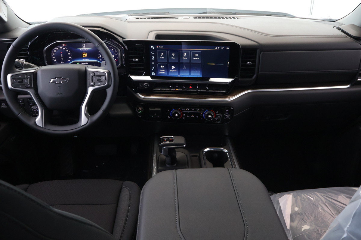 Serrures de porte à commande électrique,StabiliTrak système de contrôle de la stabilité avec antiroulis proactif et traction asservie avec contrôle électronique anti-louvoiement de remorque et aide au démarrage en pente,Système sonore Système d'infodivertissement Chevrolet 3 haut de gamme avec compatibilité avec Google intégrée(certains plans de service requis des modalités et des restrictions s'appliquent) y compris la capacité de navigation écran tactile couleur HD de 13 4 po en diagonale comprend écran multipoint AM/FM stéréo lecture audio en continu Bluetooth pour la musique et la plupart des téléphones; avec CarPlay d'Apple sans fil et Android Auto sans fil pour téléphones compatibles reconnaissance vocale évoluée applications intégrées au véhicule profils personnalisés pour les paramètres de l'infodivertissement et du véhicule,Sacs gonflables sacs gonflables frontaux à déploiement adapté pour le conducteur et le passager de la place d'extrémité avant sacs gonflables latéraux montés dans les sièges du conducteur et du passager de la place d'extrémité avant et rideaux gonflables latéraux pour les passagers des places d'extrémité avant et arrière; comprend le capteur de présence du passager pour le sac gonflable frontal de la place d'extrémité avant,Projection par téléphone sans fil pour CarPlay d'Apple et Android Auto,Démarrage à bouton-poussoir,Fonction arrêt et démarrage automatiques,Éclairage espace utilitaire monté dans la cabine et intégré avec le feu de freinage central surélevé arrière avec interrupteur dans le bloc de commandes sur le côté gauche du volant (à incandescence sur les modèles à cabine classique à DEL sur les modèles à cabine multiplace et à cabine double),Système de surveillance de la pression des pneus auto-apprentissage comprend alerte de gonflage des pneus (ne s’applique pas au pneu de secours),Phares à DEL réflecteur à DEL avec feux de jour distinctifs à DEL et animation de repérage ambre,Témoin d'avertissement de ceinture de sécurité arrière siège arrière,Poignées de portes de la couleur de la carrosserie,Crochets d'arrimage (12) fixe d'une capacité de 226 8 kg (500 lb) par coin,Groupe suspension de série,Affichage de la température extérieure dans l'affichage de la radio,Ravitaillement sans bouchon,Batterie grande capacité 730 A de démarrage à froid 80 A/h sans entretien avec protection antidécharge et prolongation d’alimentation des accessoires,Bouclez votre ceinture de sécurité,Roue 17 po x 8 po (43 2 cm x 20 3 cm) de secours pleine grandeur en acier,Emblème Chevrolet noir (calandre avant),Fonction ado,Bouches d'aération arrière de chauffage et de climatisation,Direction assistée électrique à crémaillère,Indicateur d'usure des garnitures de frein,Poignées de maintien montés sur les montants avant pour le conducteur et le passager montés sur les montants arrière,Cadre partie avant hydroformée entièrement caissonnée,Rappel de vérification des sièges arrière,Marchepied pare-chocs arrière,Boussole situé dans le groupe d'instruments,Verrou de porte-pneu verrou de porte à serrure utilisant la même clé que pour l'allumage et les serrures de portes,Hayon et cache de protection de longeron de caisse supérieurs,Ports USB 2 ports de recharge/données situés sur le tableau de bord,Réglage des sièges manuel en 4 sens côté passager,Feux de circulation de jour avec commande automatique de l’éclairage extérieur,Durabed caisse de pick-up,Freins à disque aux quatre roues avec système antiblocageavec disques DURALIFE,Système d’échappement sortie simple,Pont arrière rapport de pont de 3 23,Pneu de secours 265/70R17SL toutes saisons à flanc noir,Feux arrière à DELavec des feux de recul à incandescence et animation distinctifs,Portières à verrouillage électrique,Assistance en pente,Anti-dérapage,Système de navigation,Android Auto,AppleCar Play,Reconnaissance de la voix,Main libre Bluetooth,Écran LCD,Capteurs frontal,Coussins impact latéraux,Coussins conducteur et passager avant,Bouton arrêt et démarrage,Commandes montées sur le volant,Vérification de pression Pneus,Phares avant à DEL