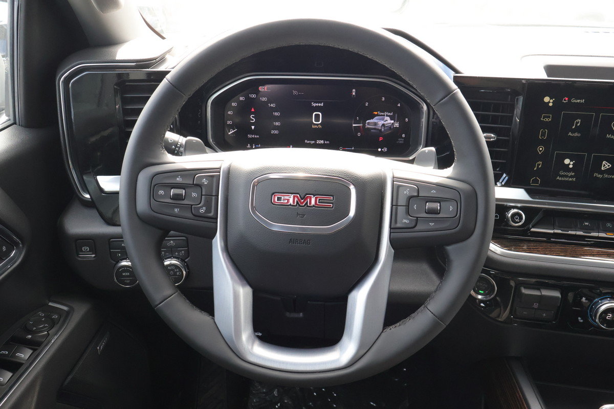 Rétroviseurs extérieurs chauffants à réglage électrique,StabiliTrak système de contrôle de la stabilité avec antiroulis proactif et traction asservie avec contrôle électronique anti-louvoiement de remorque et aide au démarrage en pente,Hayon à commande manuelle avec fonction EZ Lift qui comprend verrouillage et déblocage électriques qui comprend éclairage de la zone d'attelage,Système sonore système d'infodivertissement de GMC de qualité supérieure à écran de 13 4 po en diagonale avec Google intégrécomme la navigation et l'assistance vocale comprend un écran couleur tactile un écran tactile multipoint la radio AM/FM stéréo la lecture audio en continu Bluetooth pour la musique et la plupart des téléphones; avec Android Auto sans fil et CarPlay d'Apple sans fil pour les téléphones compatibles,Sacs gonflables sacs gonflables frontaux à déploiement adapté pour le conducteur et le passager de la place d'extrémité avant sacs gonflables latéraux montés dans les sièges du conducteur et du passager de la place d'extrémité avant et rideaux gonflables latéraux pour les passagers des places d'extrémité avant et arrière; comprend le capteur de présence du passager pour le sac gonflable frontal de la place d'extrémité avant,Sans fil CarPlay d'Apple et Android Auto sans fil,Volant chauffant,Régulateur automatique de vitesse montées sur le volant,Fonction arrêt et démarrage automatiques,Système de surveillance de la pression des pneus auto-apprentissage comprend alerte de gonflage des pneus (ne s’applique pas au pneu de secours),Téléphonie Bluetooth connectivité avec le système d'infodivertissement du véhicule,Climatiseur commande automatique de la température à deux zones,Réglage des sièges conducteur à réglage électrique en 10 sens dont soutien lombaire,Éclairage espace utilitaire monté sur la cabine intégré avec le feu de freinage central surélevé avec interrupteur dans le bloc de commandes du côté gauche du volant,Phares projecteurs à DEL à animation à fondu enchaîné clignotants et feux de jour à DEL,Affichage d'informations haut de gamme de GMC - Écran couleur tactile de 13 4 po en diagonale,Rappel de vérification des sièges arrière,Hayon de série,Affichage de la température extérieure dans l'affichage de la radio,Boussole situé dans le groupe d'instruments,Feux arrière à DEL feux arrière à DEL caractéristiques et feux d'arrét de virage et de marche arrière à incandescence à animation à fondu enchaîné,Phares antibrouillard à DEL,Freins à disque aux quatre roues avec système antiblocage avec disques DURALIFE,Feux de circulation de jour éclairage à DEL distinctif,Crochets d'arrimage (12) fixe,Cadre partie avant hydroformée entièrement caissonnée,Marchepied pare-chocs arrière,Indicateur d'usure des garnitures de frein,Roues de 20 po x 9 po (50 8 cm x 22 9 cm) en aluminium peint en noir très lustré à 6 rayons,Verrouillage de colonne de direction électrique,Centralisateur informatique de bord affichage numérique couleur configurable de 12 3 po en diagonale amélioré,Volant gainé,Anneaux-guides réglables pour ceinture de sécurité rangée avant seulement,Bouches d'aération arrière,OnStar One standard (OnStar One Business standard pour parc),Ravitaillement sans bouchon,Verrou de porte-pneu verrou de porte à serrure utilisant la même clé que pour l'allumage et les serrures de portes,Revêtement de protection du hayon et des longerons de caisse supérieurs,Réglage des sièges manuel en 4 sens côté passager,Caisse de pick-up,Direction assistée électrique à crémaillère,Système d’échappement silencieux et tuyau d’échappement en acier inoxydable aluminé,Système d’échappement sortie simple,Rétroviseur intérieur à inclinaison manuelle,Groupe suspension de grande capacité,Témoin d'avertissement de ceinture de sécurité arrière,Pare-chocs avant couleur de la carrosserie inférieure,Poignées de portes de la couleur de la carrosserie,Poignées de maintien montés sur les montants avant pour le conducteur et le passager montés sur les montants arrière,Roue 17 po x 8 po (43 2 cm x 20 3 cm) de secours pleine grandeur en acier,Pare-chocs à l'arrière couleur de la carrosserie avec marchepieds d'angle,Miroirs Chauffants,Assistance en pente,Anti-dérapage,Hayon électrique,Système de navigation,Android Auto,AppleCar Play,Main libre Bluetooth,Écran LCD,Capteurs frontal,Coussins impact latéraux,Coussins conducteur et passager avant,Volant Chauffants,Commandes montées sur le volant,Bouton arrêt et démarrage,Vérification de pression Pneus,Température automatique,Climatiseur,Siège conducteur électrique,Phares avant à DEL