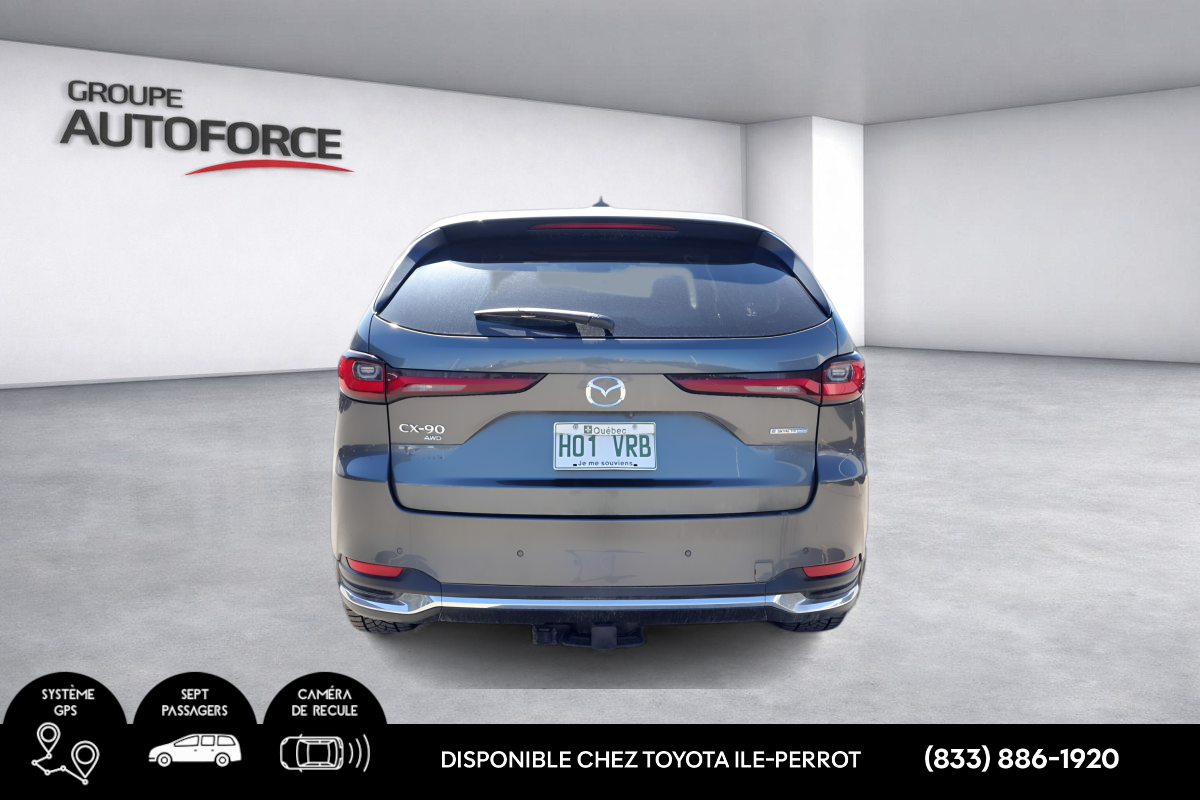 Modèle : Mazda CX-90 GT e-Skyactiv PHEV 2025 Kilométrage : 20 415 km Motorisation : Hybride branchable (Plug-in Hybrid) Transmission : Automatique Traction : AWD Condition : Aucun accident Mazda CX-90 e-Skyactiv PHEV 2025, VUS intermédiaire haut de gamme combinant performance, efficacité énergétique et luxe. Motorisation hybride branchable permettant une conduite en mode électrique, avec traction intégrale pour une conduite sécuritaire en toute saison. Véhicule récent, propre et bien entretenu. Équipements principaux Climatisation automatique trizone Groupe électrique complet (vitres, miroirs, verrous, hayon électrique) Bluetooth Apple CarPlay / Android Auto Caméra de recul Sièges avant chauffants Volant chauffant Démarrage à bouton-poussoir Écran multimédia avec commande centrale Régulateur de vitesse adaptatif Systèmes d’aide à la conduite (freinage d’urgence, maintien de voie, surveillance angles morts) Câble de recharge inclus MEILLEUR PRIX GARANTIE SUR LES ÉCHANGES! TOUS NOS VÉHICULES SONT INSPECTÉS PAR NOS TECHNICIENS CERTIFIÉS TOYOTA. GARANTIE PROLONGÉE DISPONIBLE, CARFAX INCLUS. FINANCEMENT À TAUX COMPÉTITIF, SERVICE D'IMMATRICULATION SUR PLACE. TAXES EN SUS. Concessionaire Toyota Certifié à L'ILE PERROT. MAINTENANT OUVERT 6 JOURS. Vaste choix de véhicule d'occasion à vendre. TOUTES CATÉGORIES DISPONIBLES: SOUS-COMPACT, COMPACT, BERLINE, À HAYON, HYBRIDE, PLEINE TAILLE, FOURGONNETTE, 4X4, AWD, VUS, SPORT, LUXE. Montréal | Pointe-Claire | Dollard-des-Ormeaux | Pierrefonds-Roxboro | Kirkland | Beaconsfield | Dorval | Longueuil | Ville St-Laurent | Lachine | St-Lazare | Valleyfield | Vaudreuil | Brossard | Châteauguay | Rigaud | 25 minutes du centre-ville de Montréal, 15 minutes de Pointe-Claire et Lachine. IPT2024 AUTOFORCE CE LE XLE S SE XSE LIMITED SR5 TRD CATÉGORIE A: 6 MOIS OU 10,000 KM.